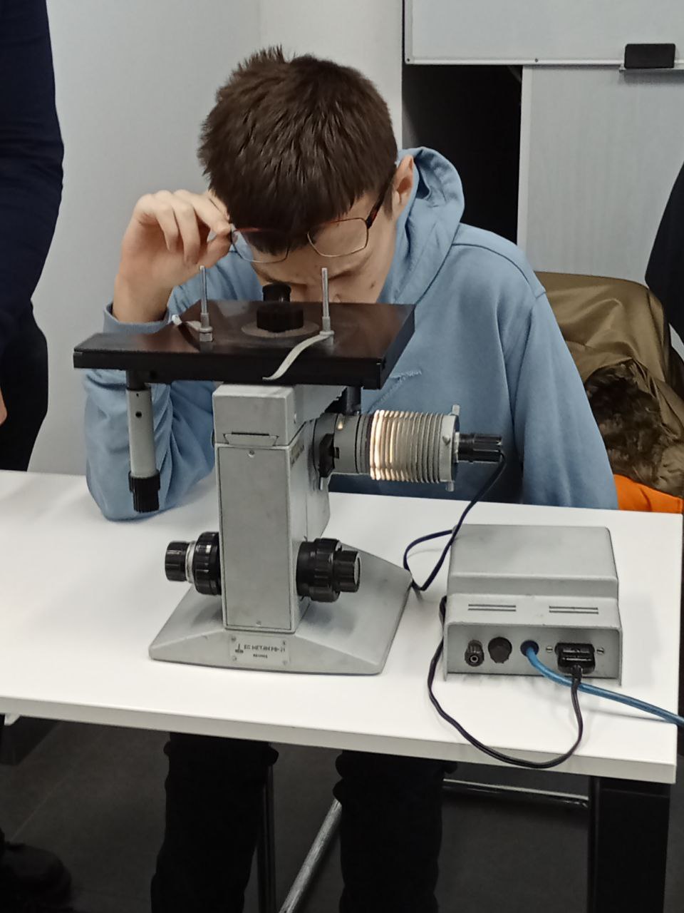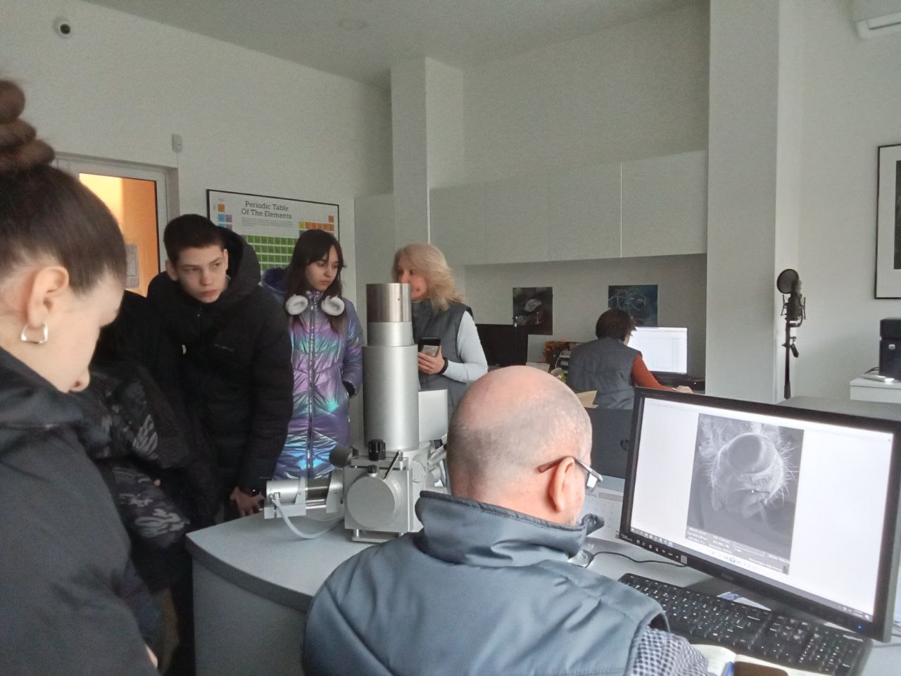 Учні ознайомилися з мікроструктурою матеріалів, використовуючи різні види мікроскопів. У лабораторії авіаційних компаній вони дізналися, як досліджуються матеріали для створення легких та міцних компонентів.