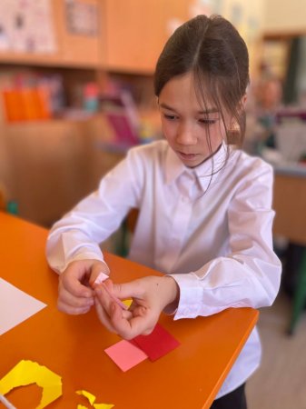 Сьогодні учні початкової школи вперше познайомилися з незвичайною технікою створення аплікацій – вириванням деталей руками. Вони з подивом відкрили для себе, що звичні ножиці можна замінити власними пальчиками, а з простого шматка паперу народжується справжнє диво – квіткові композиції, сповнені дитячої фантазії.