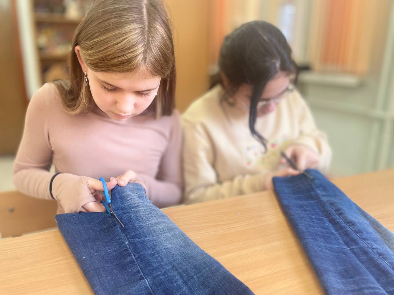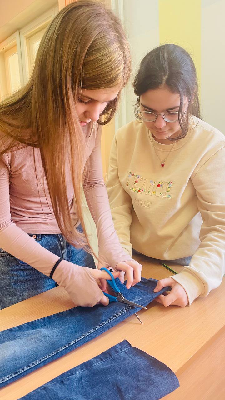 Сьогодні світ дедалі більше звертає увагу на екологічну свідомість, повторне використання речей та зменшення відходів. Саме тому ідея переробки старих речей набирає популярності серед молоді. На уроці технологій учениці вирішили дати «друге» життя старим джинсам, перетворивши їх на стильні сумки-шопери.