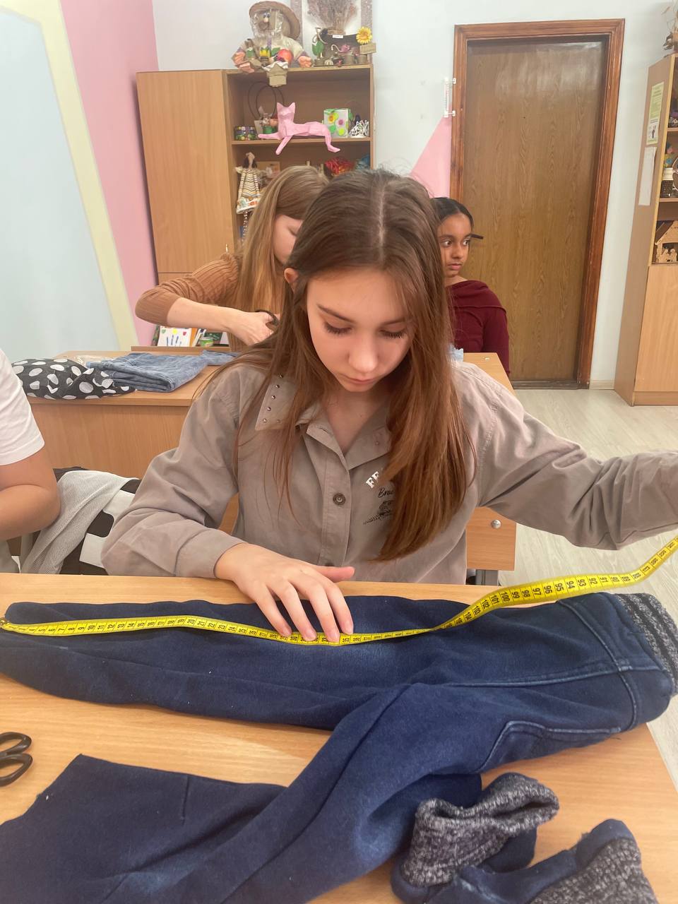 Джинсові шопери — це не лише модно, а й практично. Джинсова тканина міцна, довговічна, легко витримує вагу покупок і при цьому виглядає сучасно. Під час роботи дівчата вчилися кроїти шопери, моделювати та декорувати вироби, додаючи індивідуальності своїм сумкам.