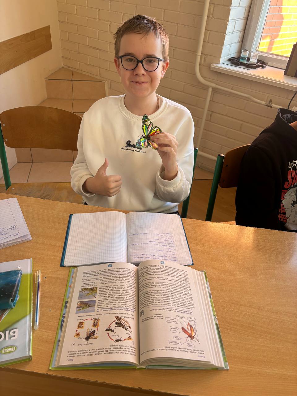 На уроці біології учні 7-го класу поринули у захопливий світ найчисельніших мешканців планети — комах. Вивчаючи тему «Різноманітність комах», школярі не лише дізналися про вражаючі факти, а й створили власні моделі комах з пластиліну, бісеру та інших декоративних матеріалів.