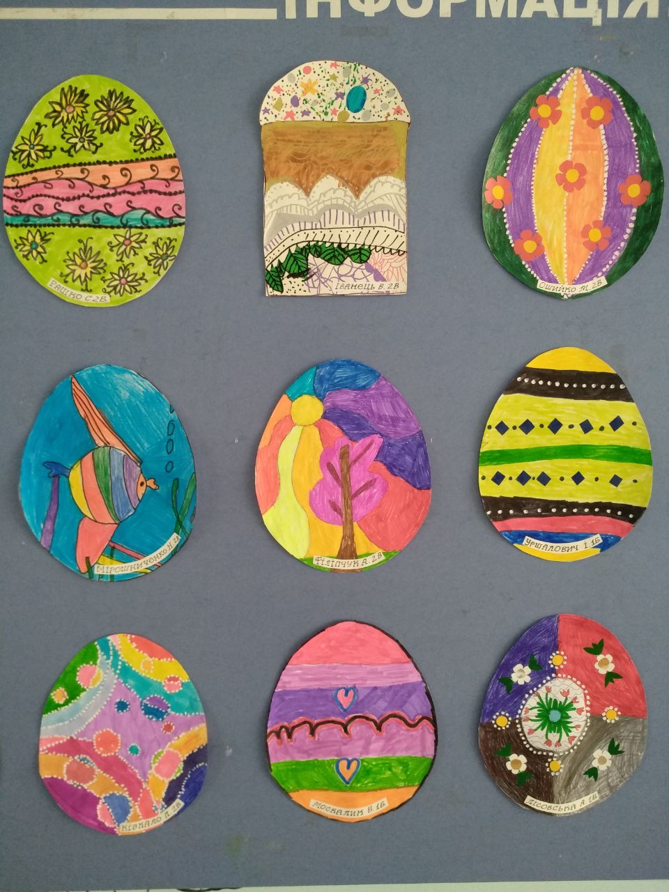 Учні 1–2 класів підготували справжню виставку чарівних писанок — яскравих, казкових, натхненних. Кожна робота — маленький витвір мистецтва, створений з любов’ю та трепетом до традиції.