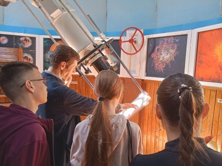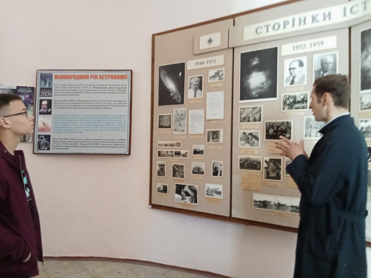Особливу увагу привернув астрограф Штейнґеля (1912–1914), перевезений з Німеччини у 1949 р. і встановлений у Голосієві, на якому до 1986 р. виконано понад 6000 астрономічних спостережень. Учні побачили карту Місяця з кратерами, названими на честь українських астрономів, а також дізналися про внесок обсерваторії у міжнародні наукові проєкти.