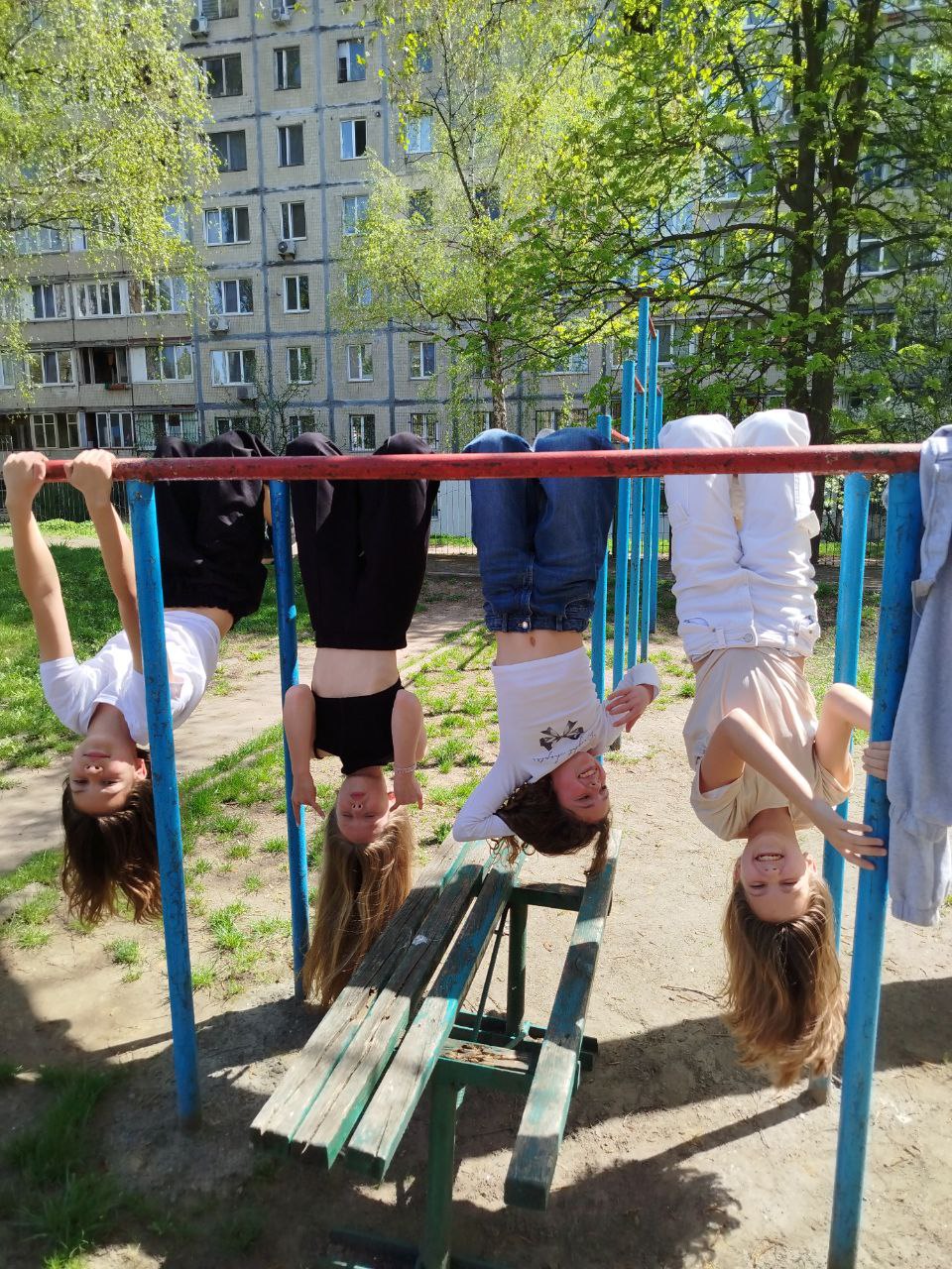 Так-так, саме так наші дівчата й тренували пам’ять — весело, яскраво й нестандартно, зависнувши на турніку вниз головою!