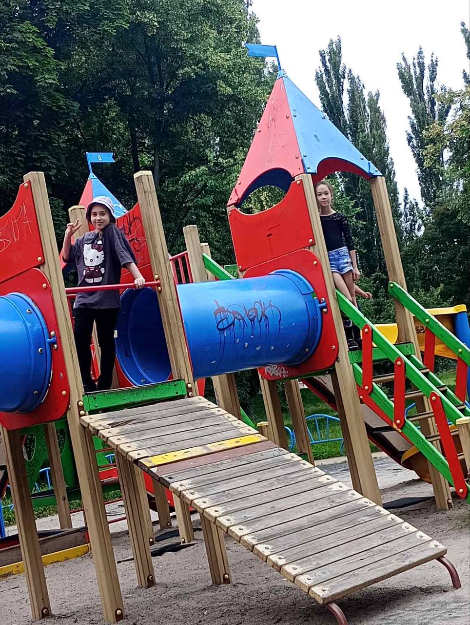 А вихованці табору, звісно, теж не залишилися без пригод! Влаштували свою мандрівку — нехай і на сусідній майданчик, але з веселим настроєм, руханками і… літаючою парасолькою!