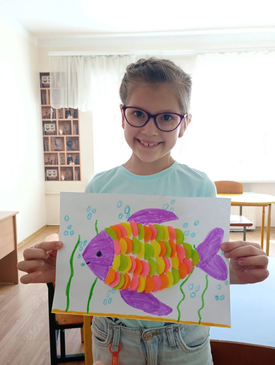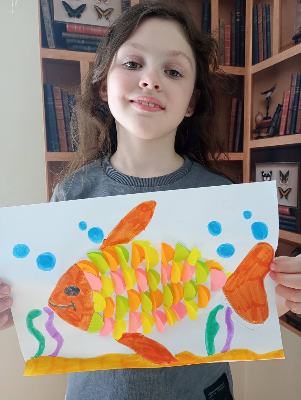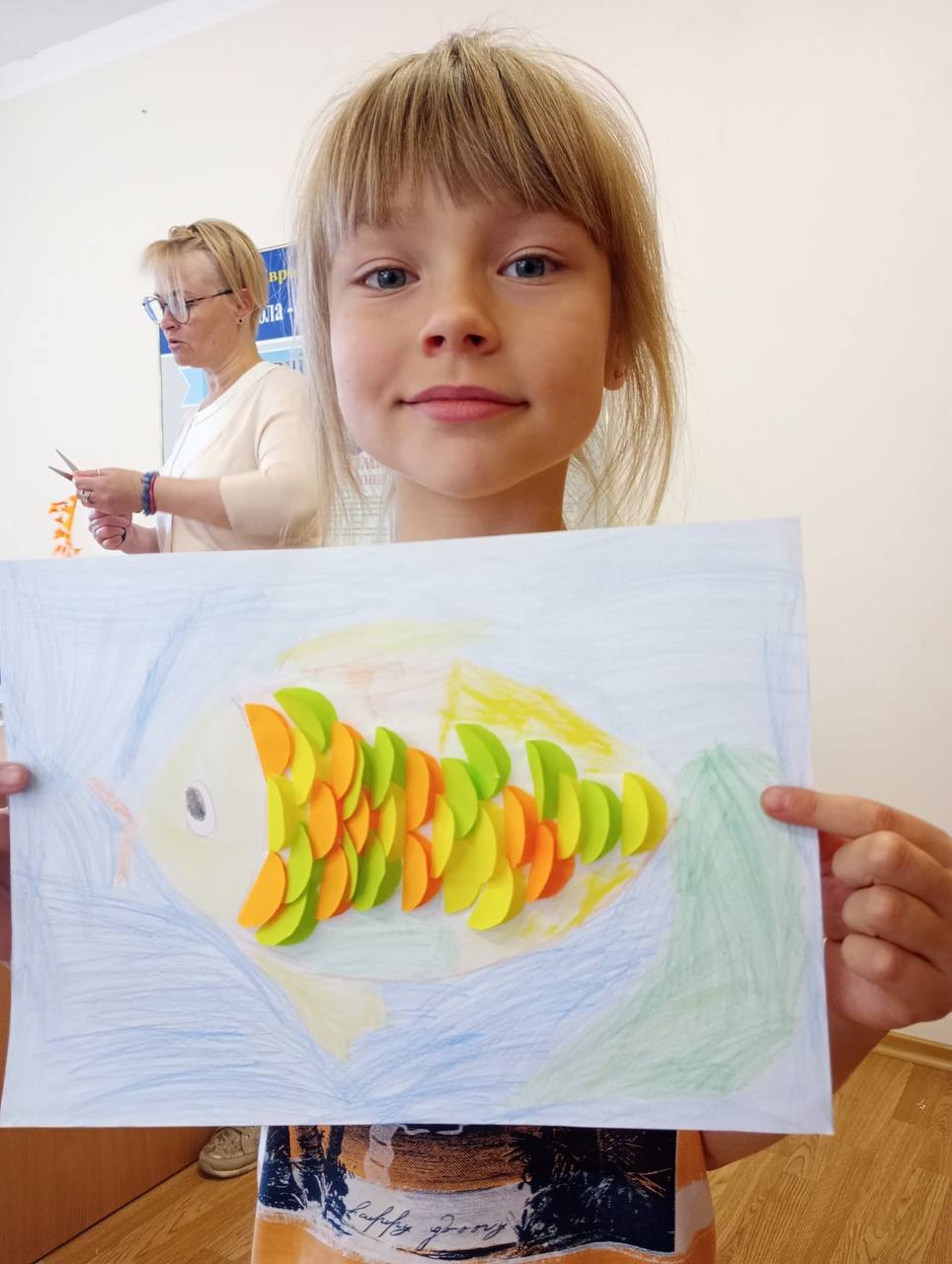 Діти із захопленням вирізали кольорові хвостики, плавники, лусочки, клеїли оченята, додаючи кожній рибці власного характеру й настрою. Хтось зробив веселу рибку, хтось — мрійливу, а дехто — справжню золоту, як із казки.