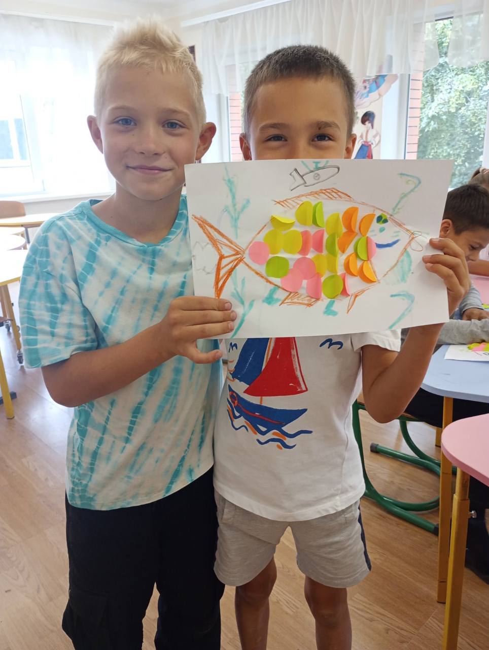 Сьогоднішнє заняття з арт-терапії в нашому таборі подарувало дітям не лише хвилини творчості, а й справжню магію здійснення мрій. Під керівництвом психолога вихованці виготовляли рибку-бажань — яскраву аплікацію, що несе в собі надію та віру у дива.