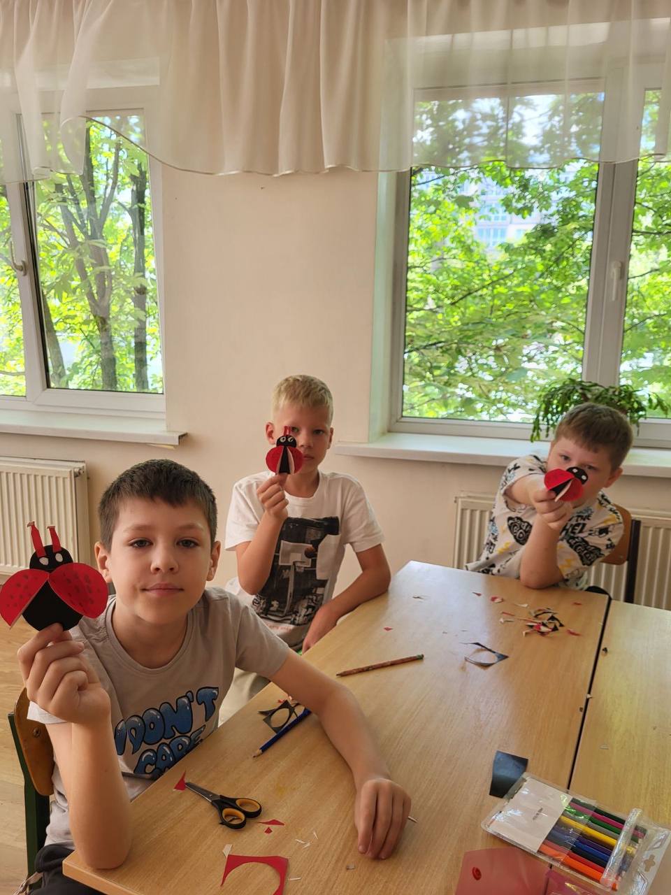 Сьогодні в таборі панувала атмосфера яскравості та радості, адже відбувся тематичний день «Червоний». У його межах вихованці взяли участь у творчій діяльності з виготовлення однієї з найулюбленіших дітьми комах — сонечка.