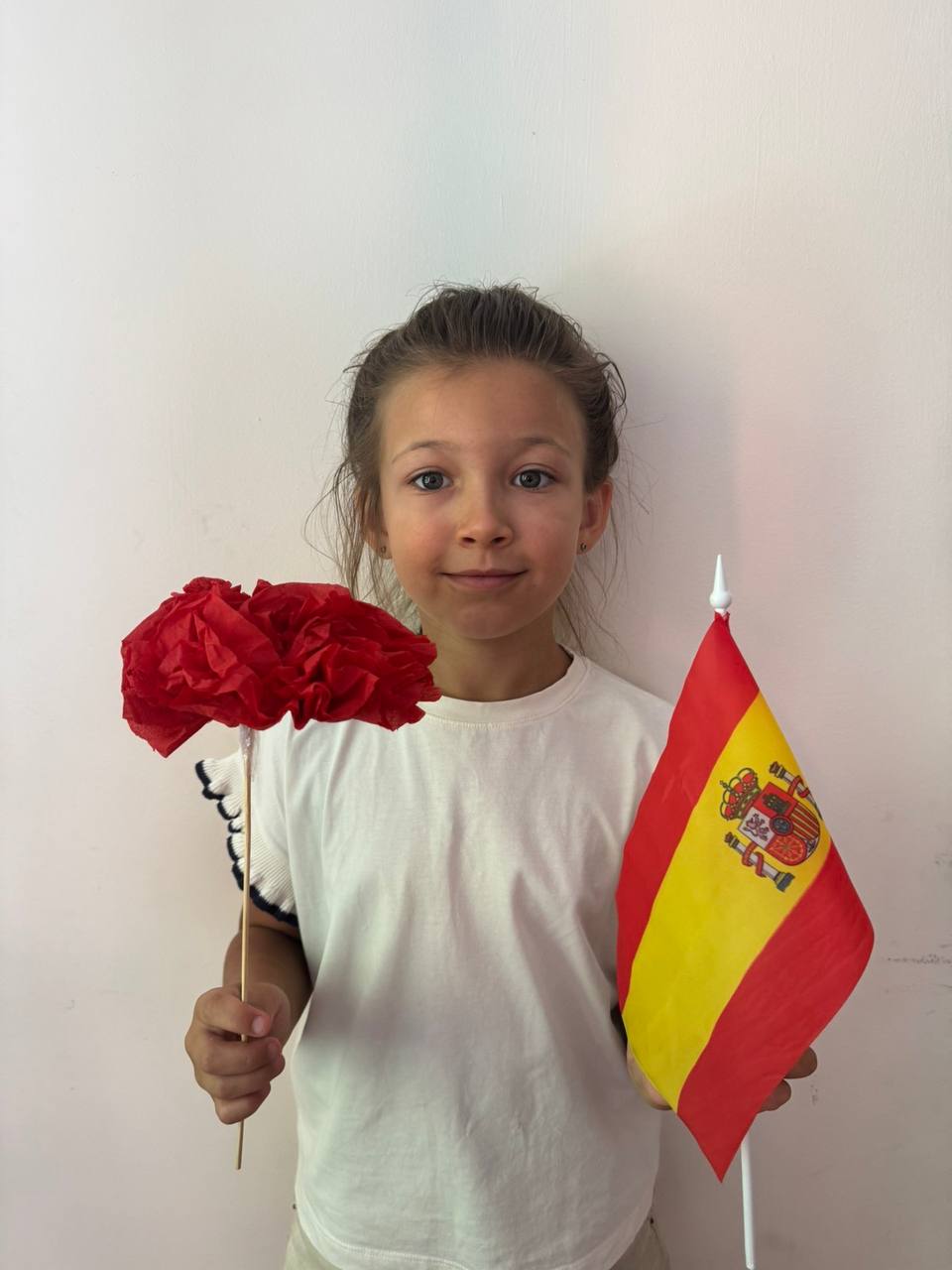 У майстерні запанувала справжня квіткова магія! Наші юні митці виготовляли власноруч гвоздики — національний символ Іспанії. Ці квіти не просто прикрашають свята — вони є частиною емоційного танцю фламенко, символізуючи пристрасть і красу. Діти з радістю створювали свої паперові шедеври, вкладаючи у них тепло душі та кольори іспанського сонця.