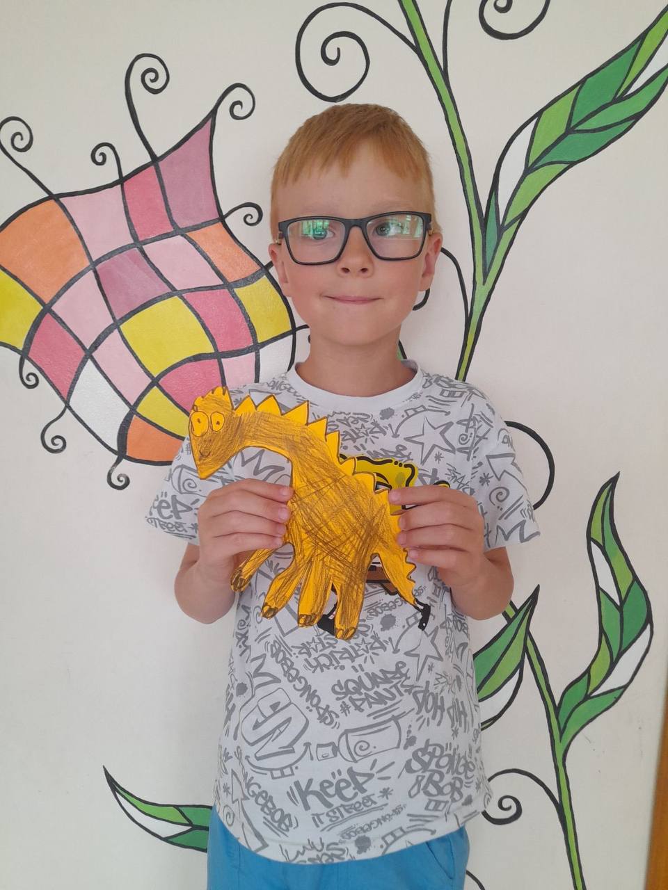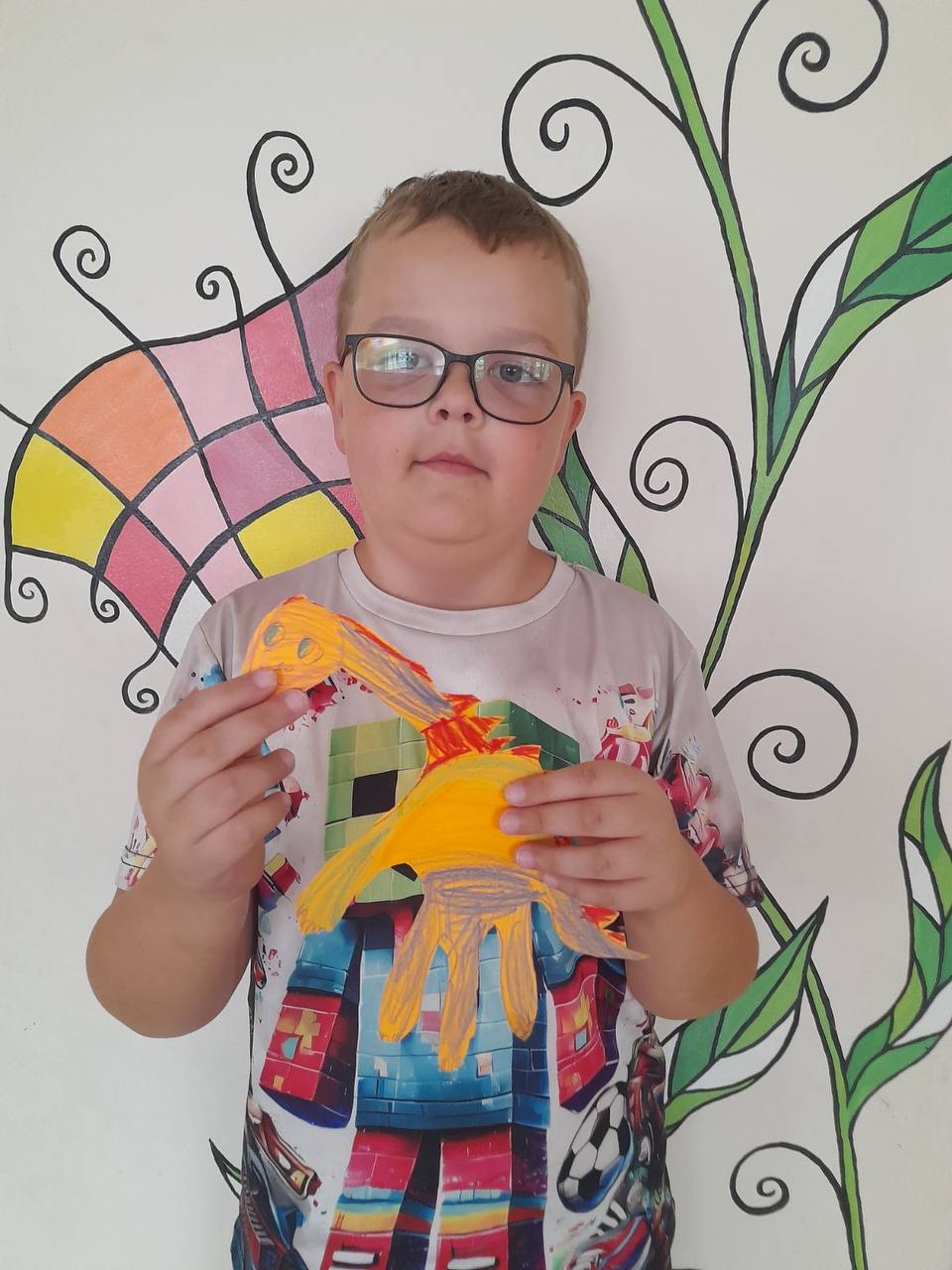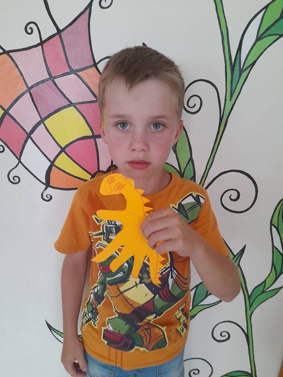 Особливо яскравим стало арт-терапевтичне заняття, на якому діти перетворювали… свої ручки на динозаврів! Обвівши долоньки на папері, вони створювали кумедних і доброзичливих динозавриків — з очима, шипами, хвостиками й фарбами всіх кольорів веселки. Кожна дитяча робота виявилася унікальною, яскравою, живою — як і сама дитина.