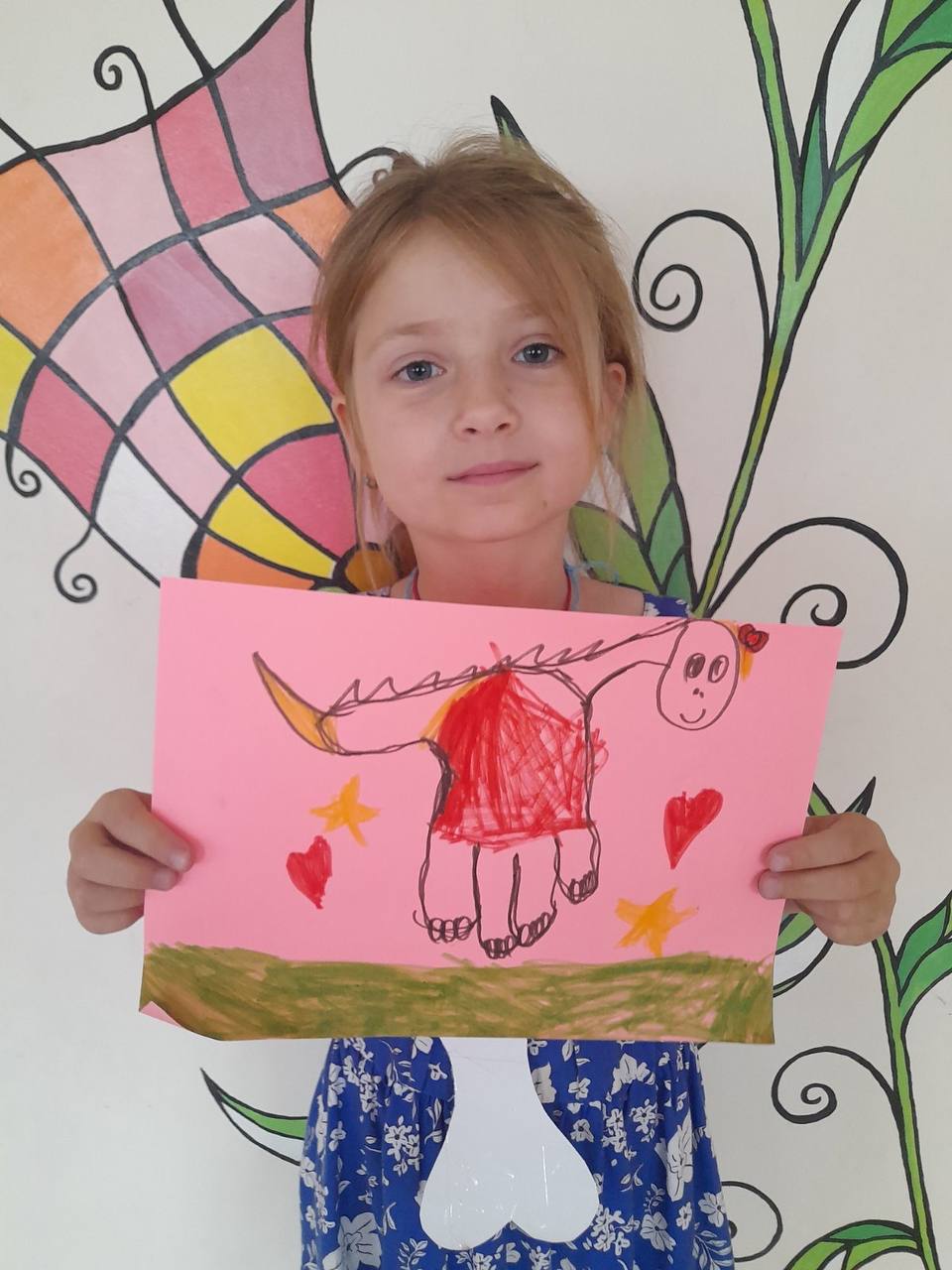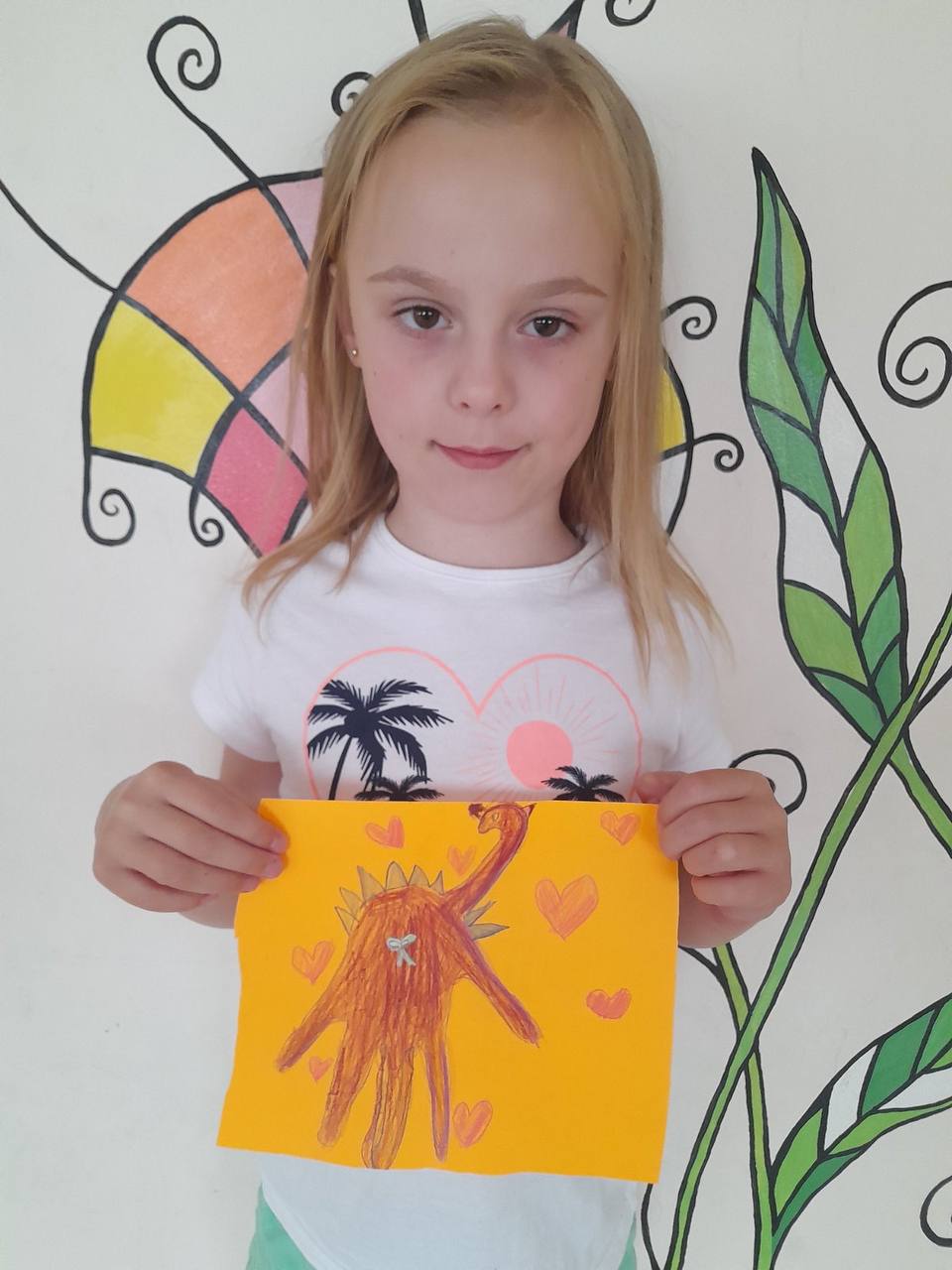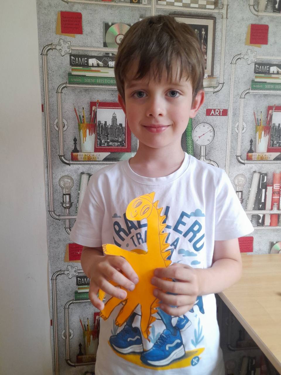 Особливо яскравим стало арт-терапевтичне заняття, на якому діти перетворювали… свої ручки на динозаврів! Обвівши долоньки на папері, вони створювали кумедних і доброзичливих динозавриків — з очима, шипами, хвостиками й фарбами всіх кольорів веселки. Кожна дитяча робота виявилася унікальною, яскравою, живою — як і сама дитина.