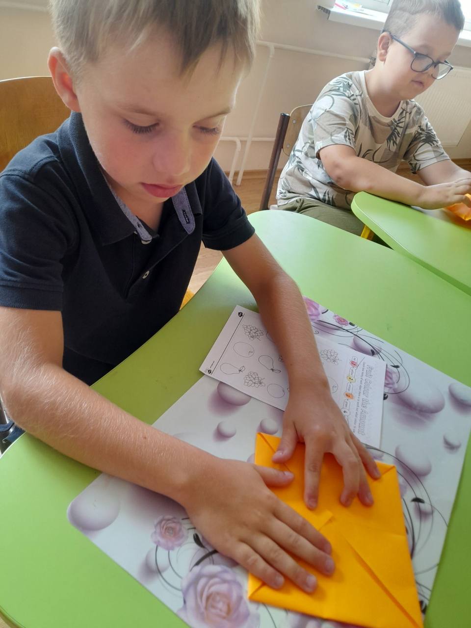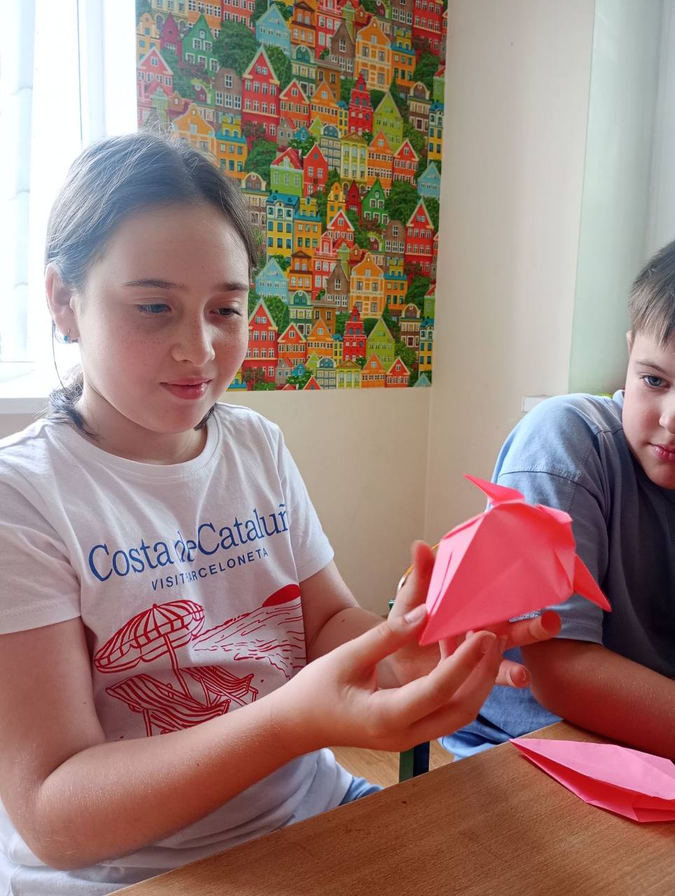 На черговому занятті з арт-терапії діти поринули у захопливий світ орігамі — мистецтва складання паперу. Темою дня стали пташки, які символізують свободу, мрію та надію. Малеча зосереджено працювала з кольоровими аркушами, уважно слухала інструкції та ретельно складала кожен згин.