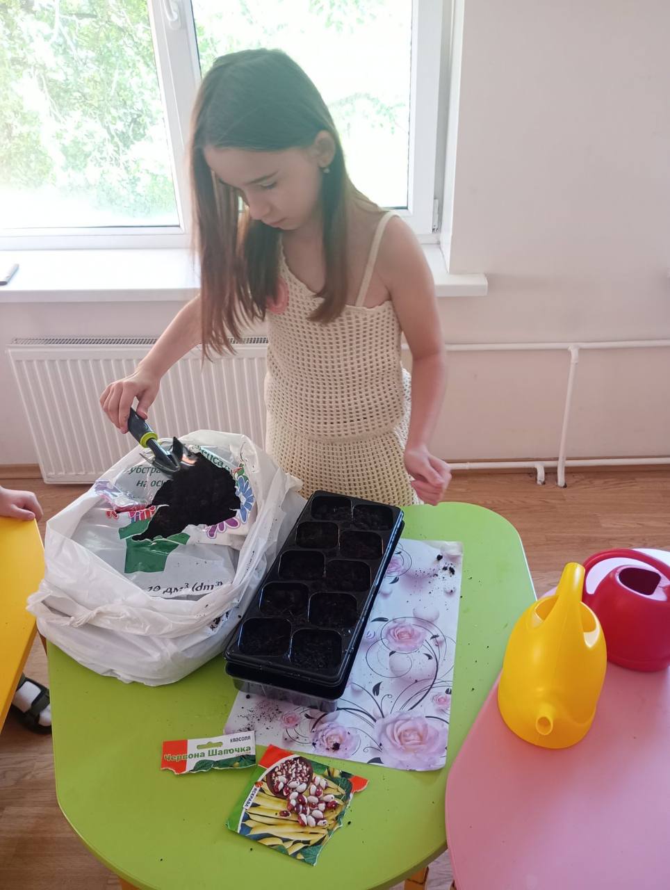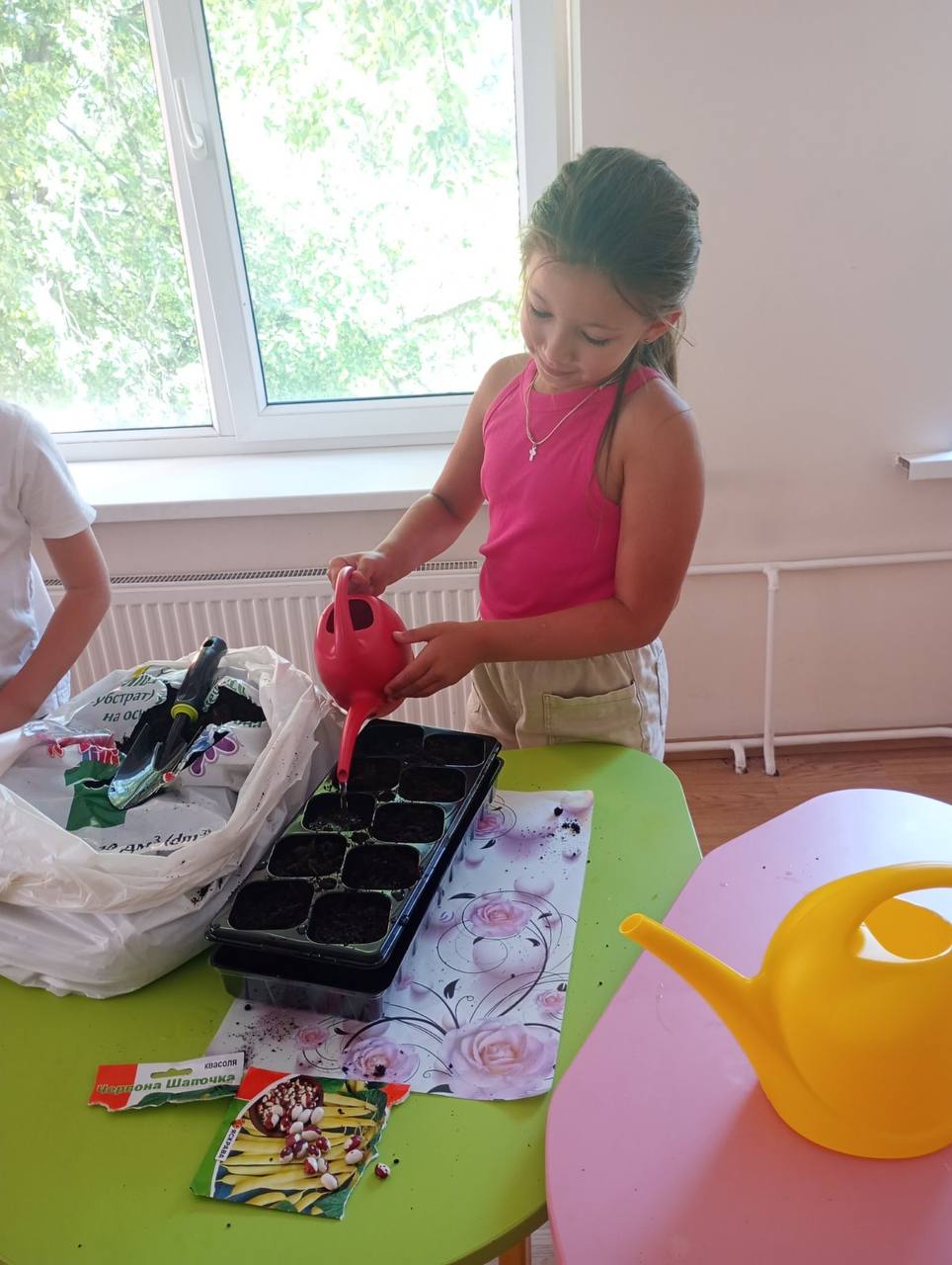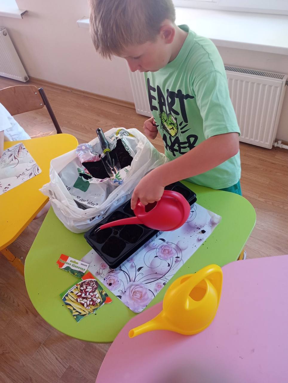 Сьогодні в таборі панував справжній дух садівництва! Наші вихованці висаджували квасолю та боби, знайомилися з основами догляду за рослинами та відповідально ставилися до справи — ретельно поливали свої саджанці.
