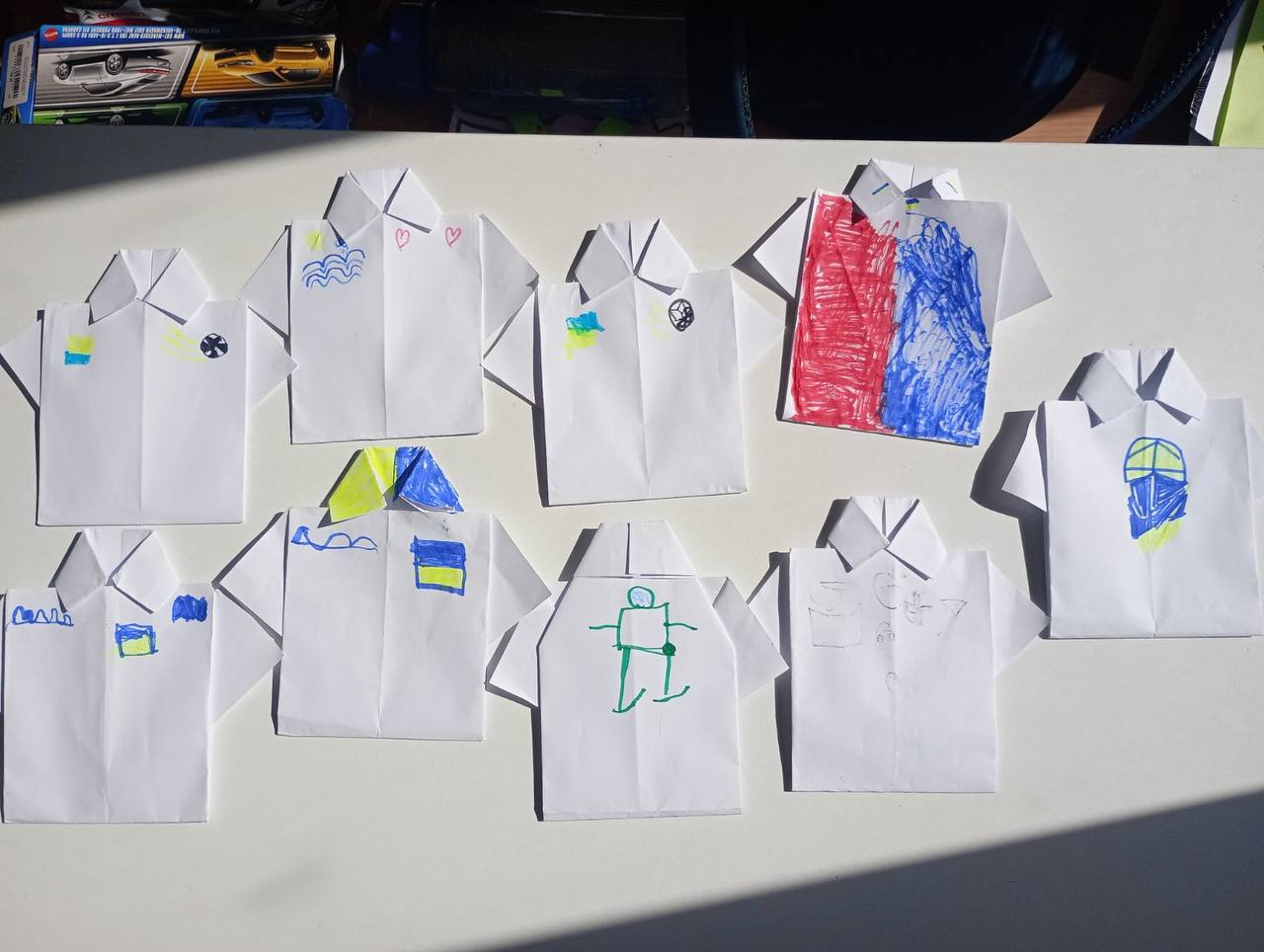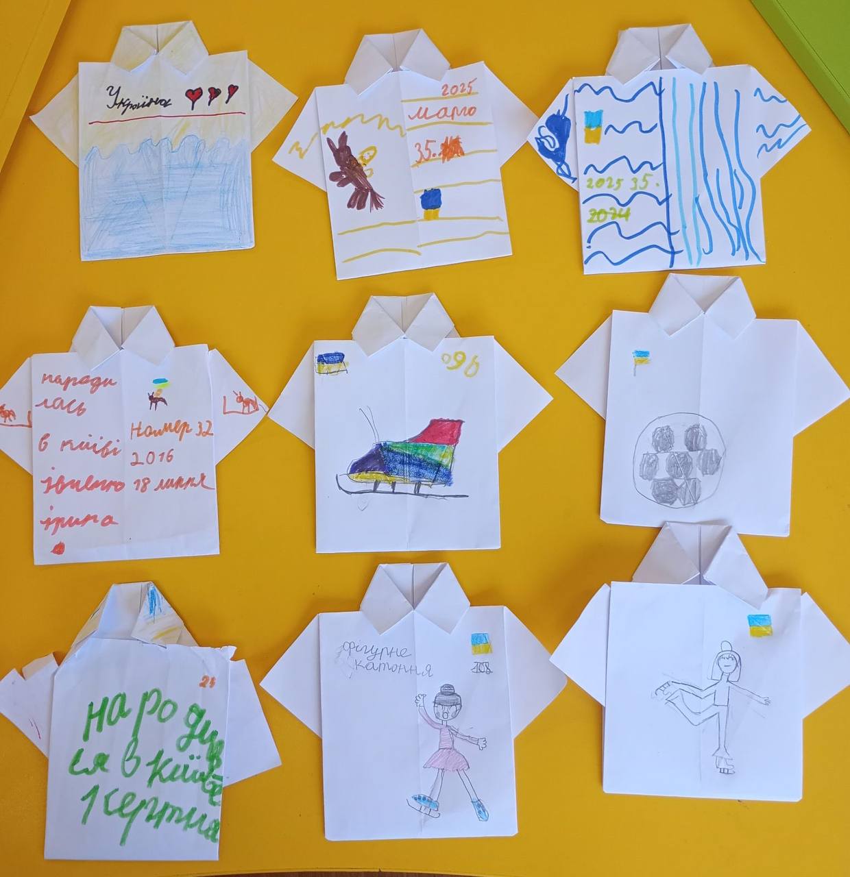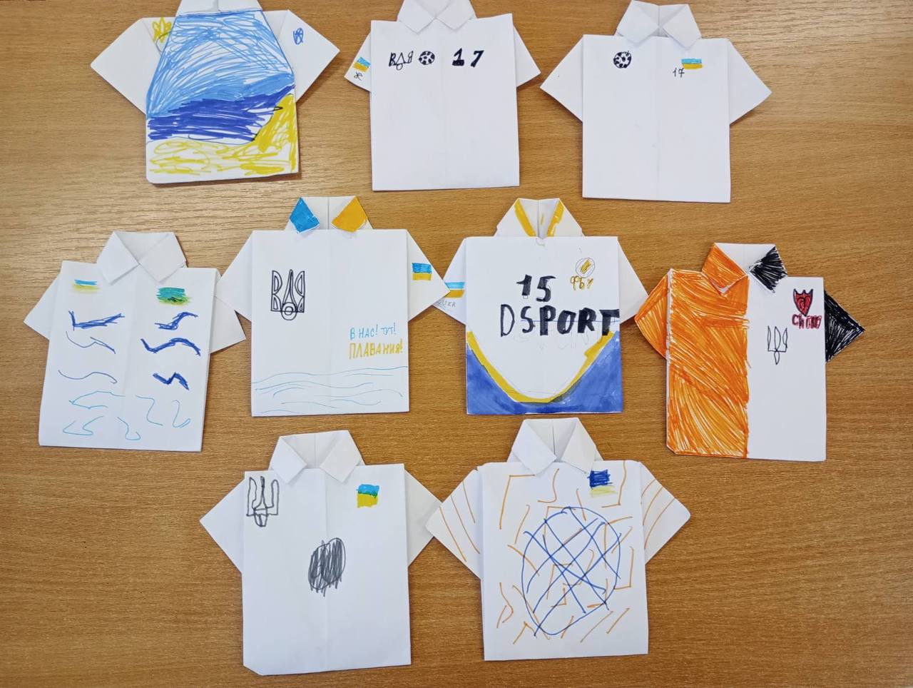 Ми розпочали з дизайнерського виклику: діти створювали форму для майбутніх українських чемпіонів, використовуючи техніку орігамі. Жовто-блакитні кольори, тризуби, колоски та соняшники стали символами сили й незламності. Одні мріяли про легкі костюми для футболістів, інші — про граційні для фігуристів чи яскраві для плавців. І все — з точністю до складки паперу.