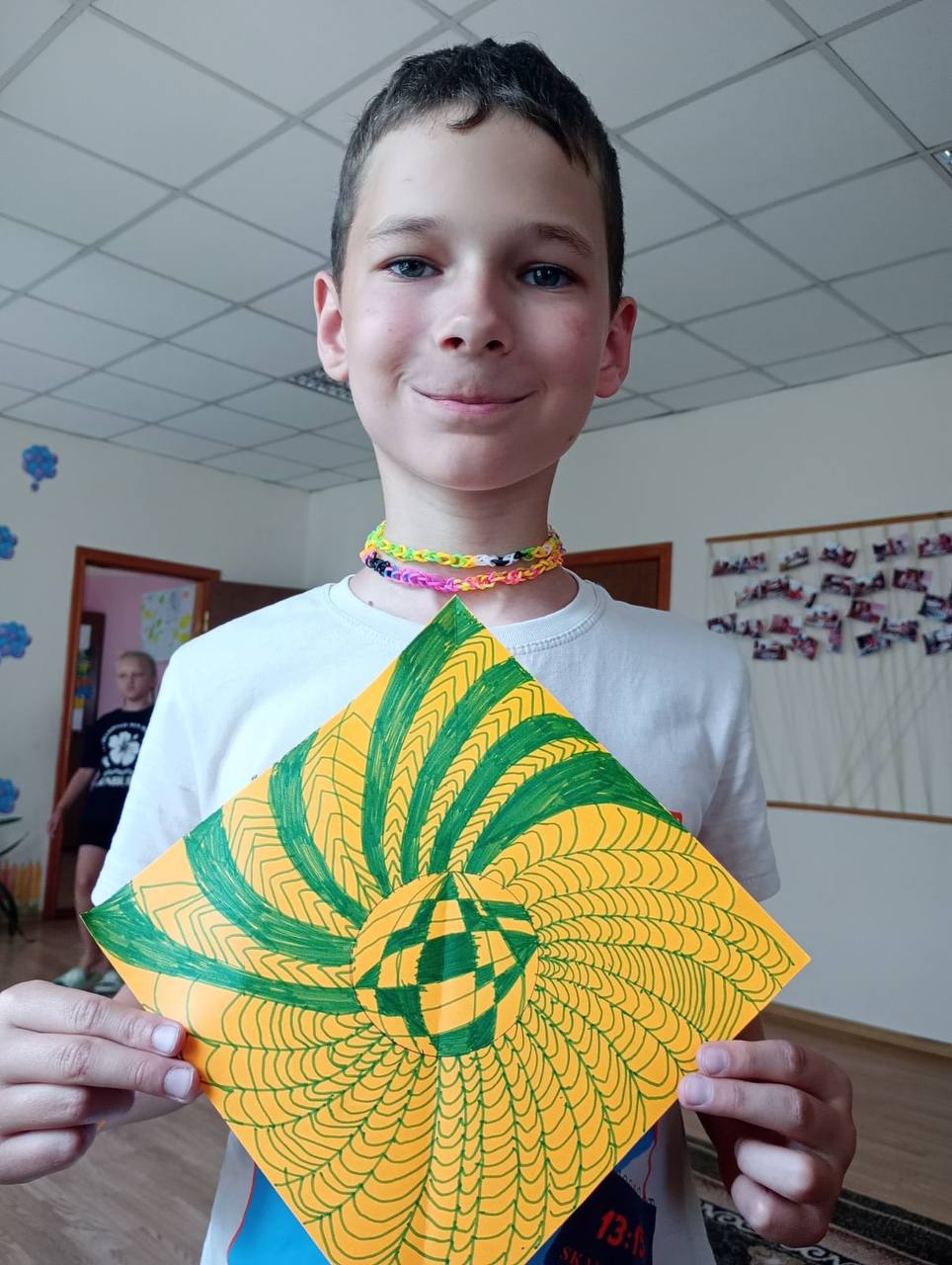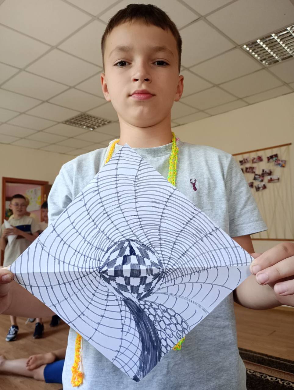 Завершили день арт-терапією зі створення оптичних ілюзій: за допомогою кольору та ліній кожен надав своїй роботі ефект об’єму та руху. Кожна робота вийшла унікальною, із власним ритмом і характером.