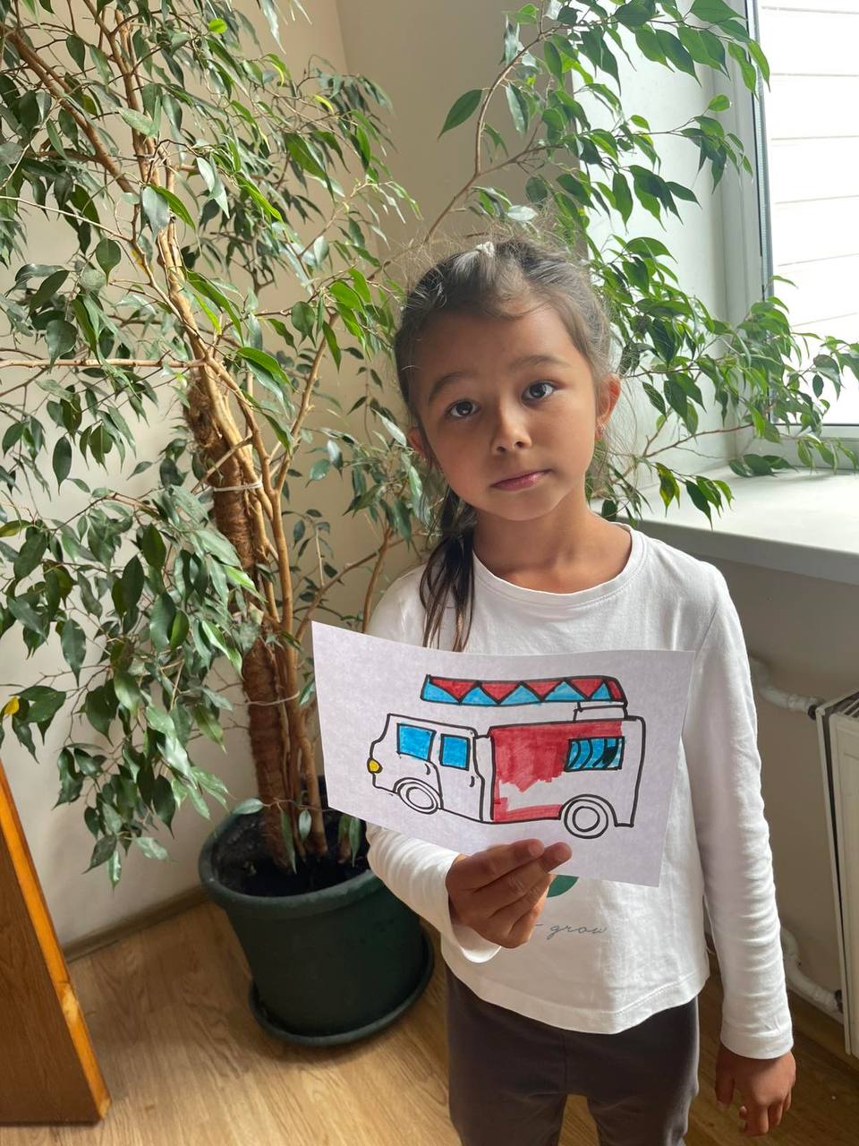 Вчили нові слова, співали пісеньку, складали пазли та розфарбовували яскраву fire engine. І все це — легко, весело та з новими знаннями!