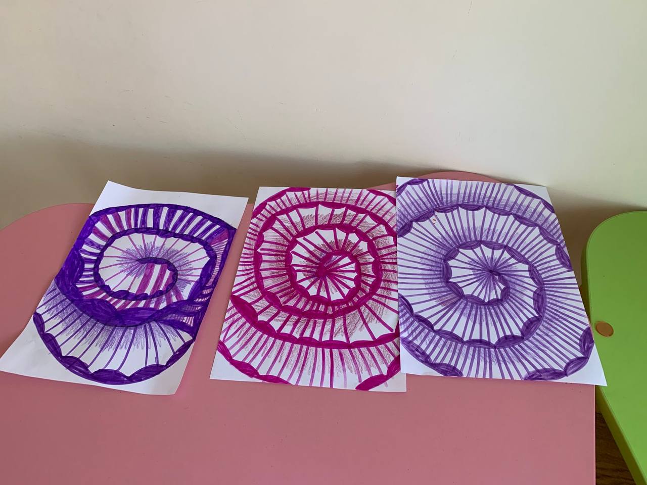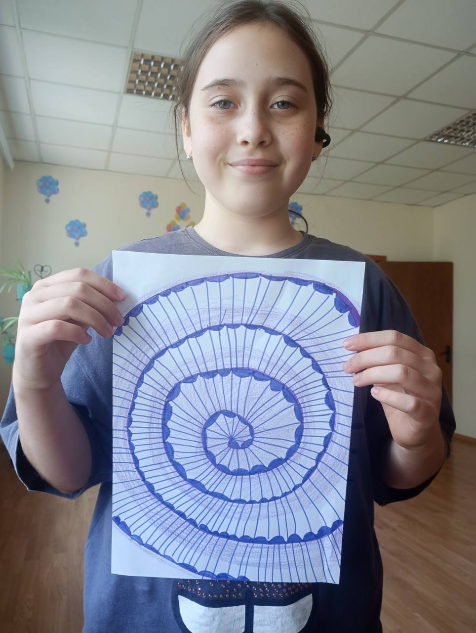 Далі кожен створював власну ілюзію на папері: за допомогою ліній, контрастів, повторюваних фігур. У процесі малювання учасники зосереджувалися, заспокоювалися, відчували, як лінії й форми поступово складаються у щось більше, ніж просто малюнок.