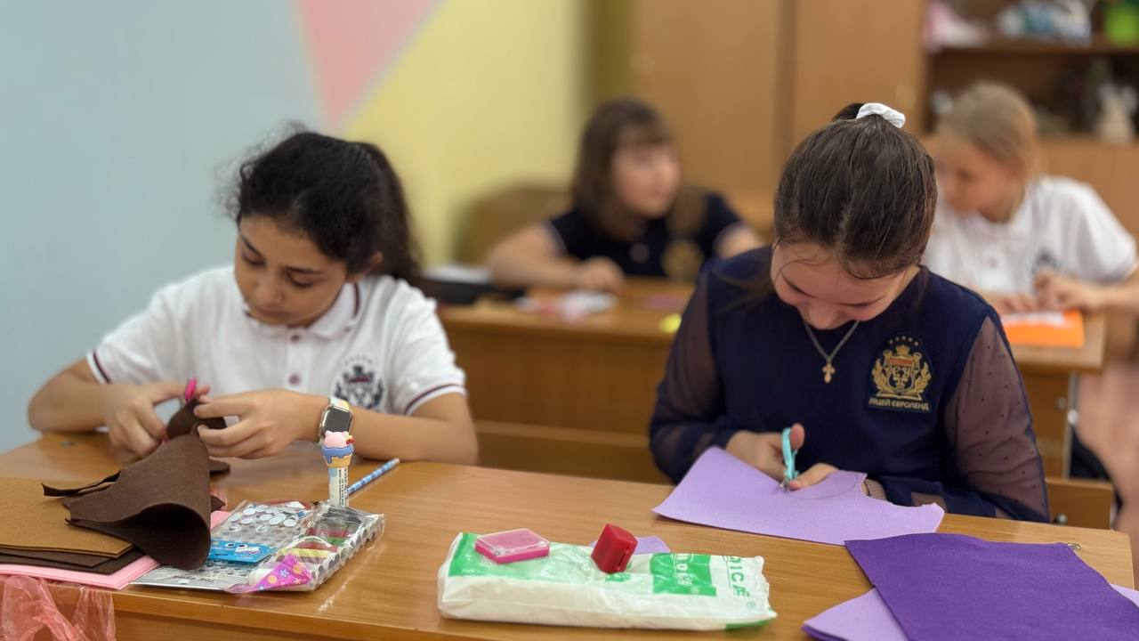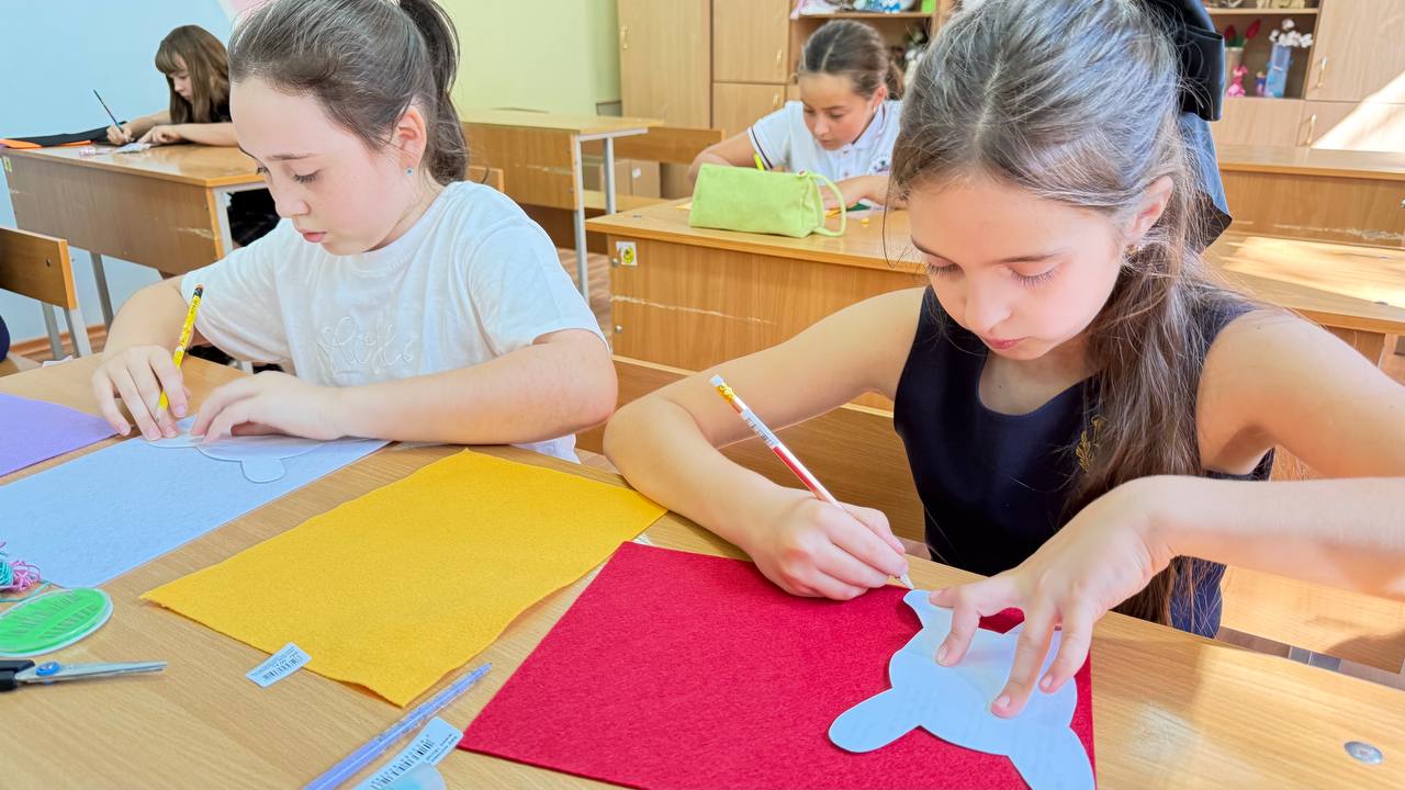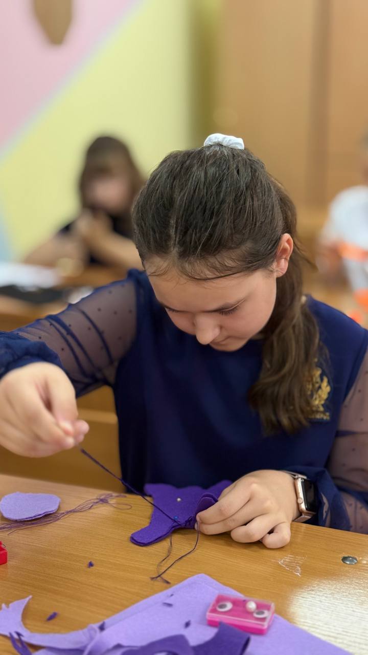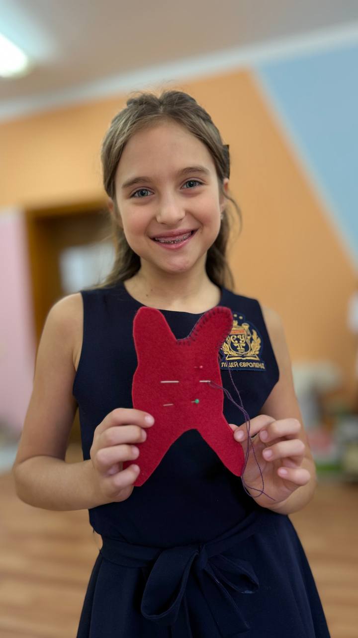 На одному з занять школярі працювали над виготовленням м’яких іграшок із фетру. Вони вчилися викроювати основу, добирати деталі та з’єднувати їх за допомогою оздоблювального «петельного» шва, який надає виробам одночасно міцності й декоративності. Для дітей це стало нагодою відчути себе справжніми творцями.