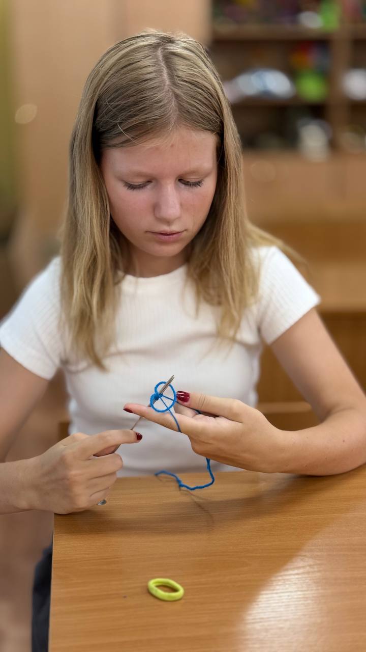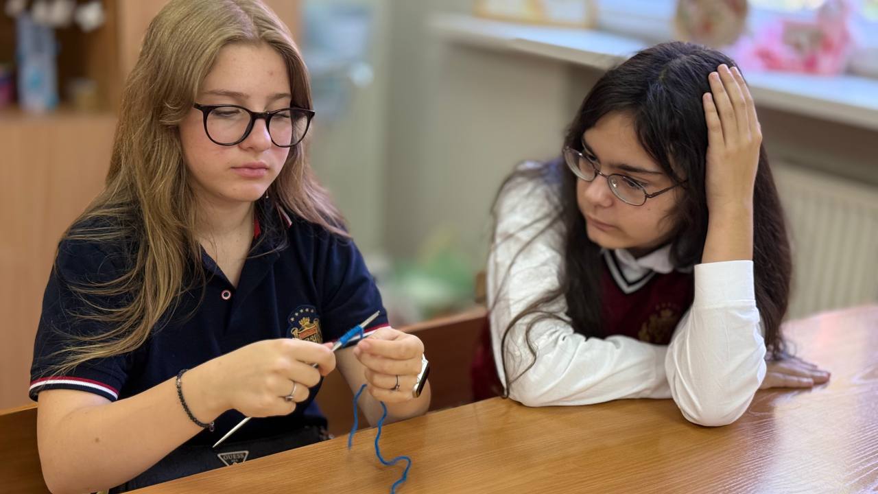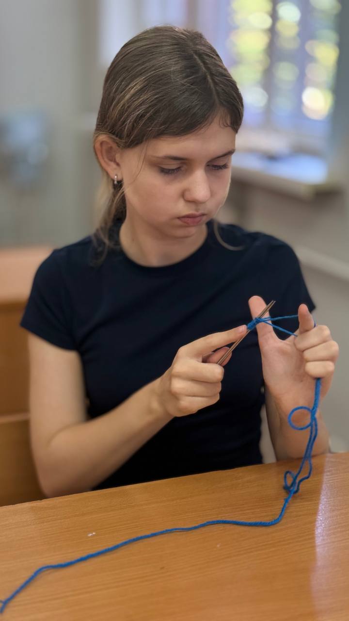 Інший урок був присвячений темі «В’язання спицями». Учні познайомилися з основними видами петель та розпочали роботу над власними проєктами — сумками для мобільних телефонів. Такі практичні вироби дозволяють учням побачити результат своєї праці й розвивати моторику, посидючість та креативність.