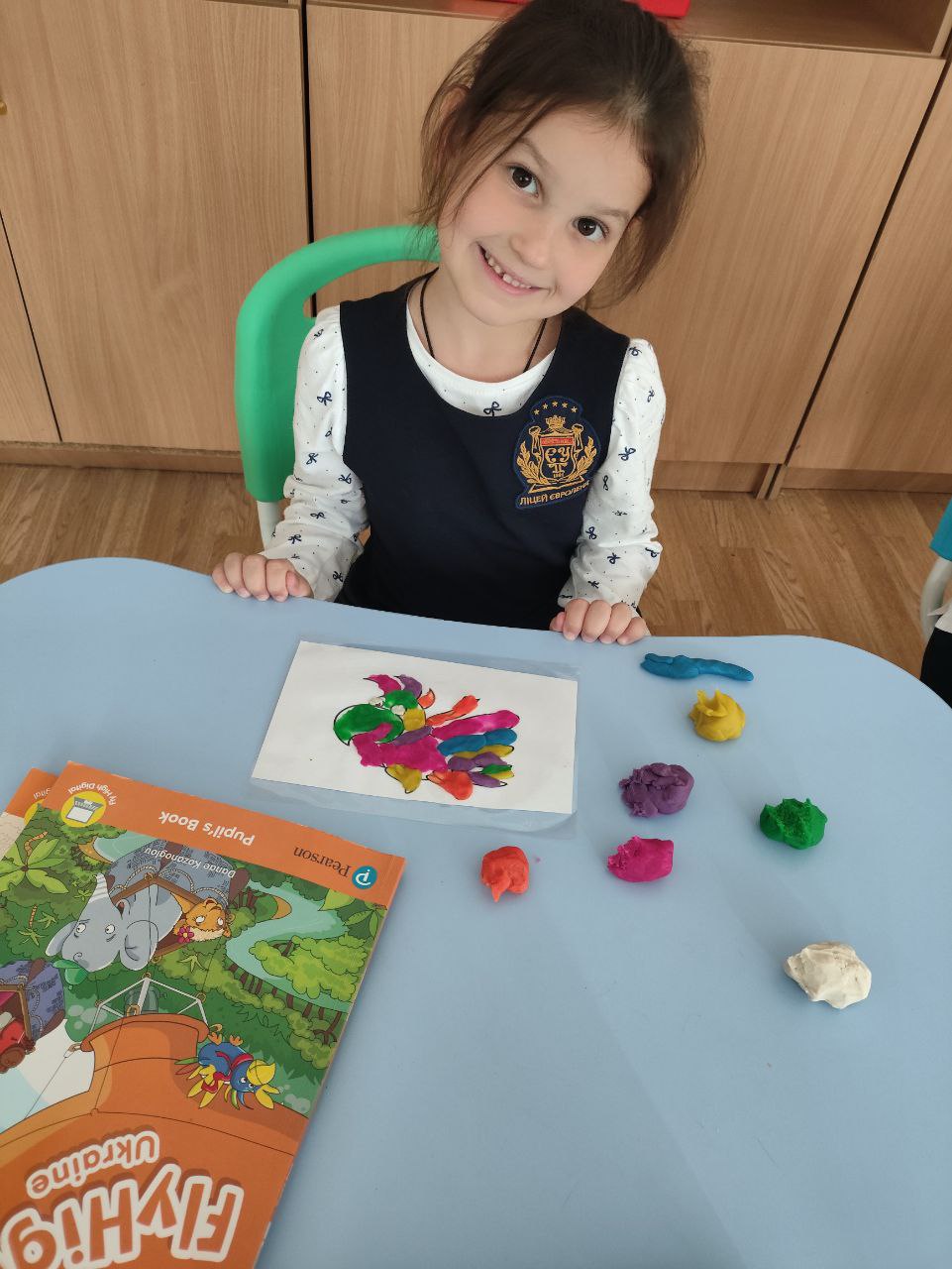 Англійської мови: познайомились з яскравим Paco the parrot та повторили кольори.