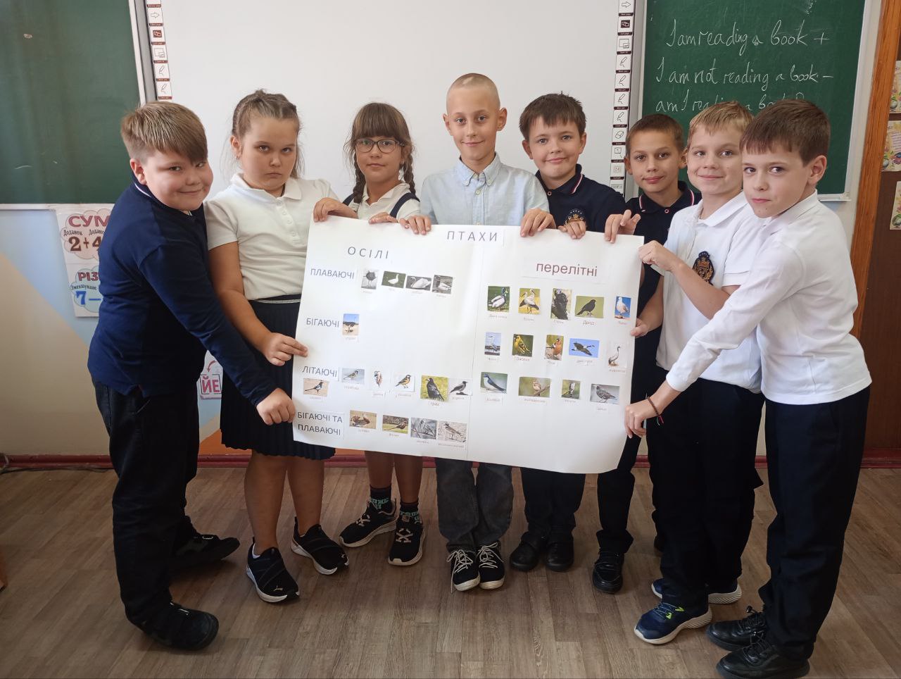 Практичним завданням стало створення тематичного плакату «Птахи», на якому діти зобразили різноманітних птахів та поділили їх на групи.