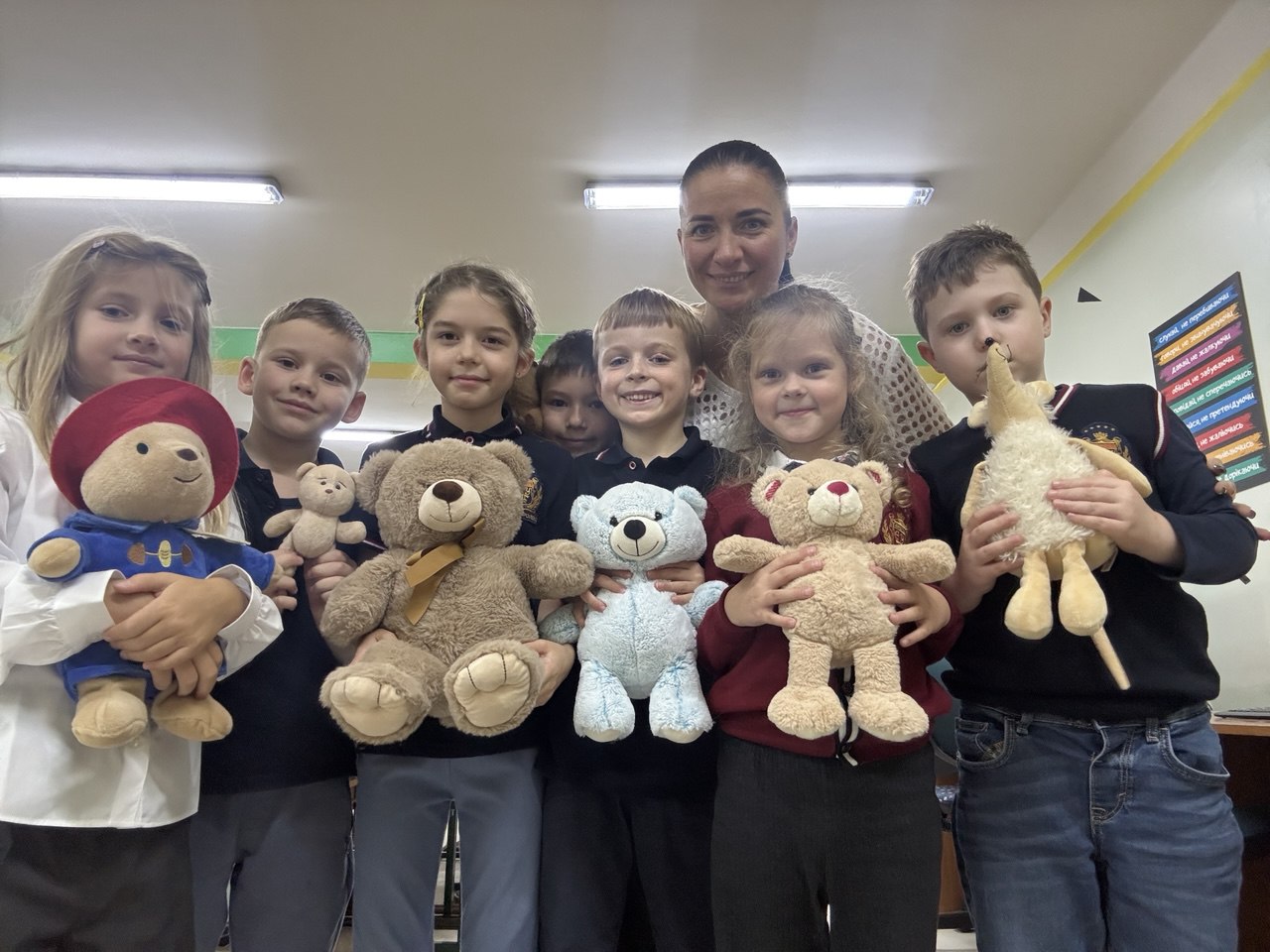 З самого ранку ліцей наповнився атмосферою радості. У коридорах звучав сміх, у класах — захоплені вигуки, адже кожен прийшов не сам, а зі своїм ведмедиком-компаньйоном. На партах і підвіконнях оселилися великі плюшеві ведмеді, мініатюрні брелоки й старі улюбленці, які вже бачили не одне шкільне свято.