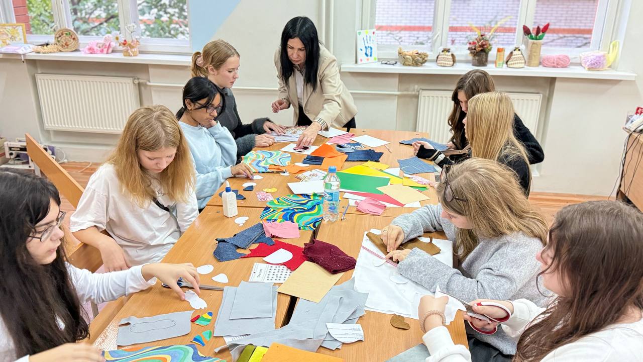 - дівчата на уроці технологій створювали собачок у техніці аплікації з тканини — кожен песик став уособленням тепла, любові та фантазії;