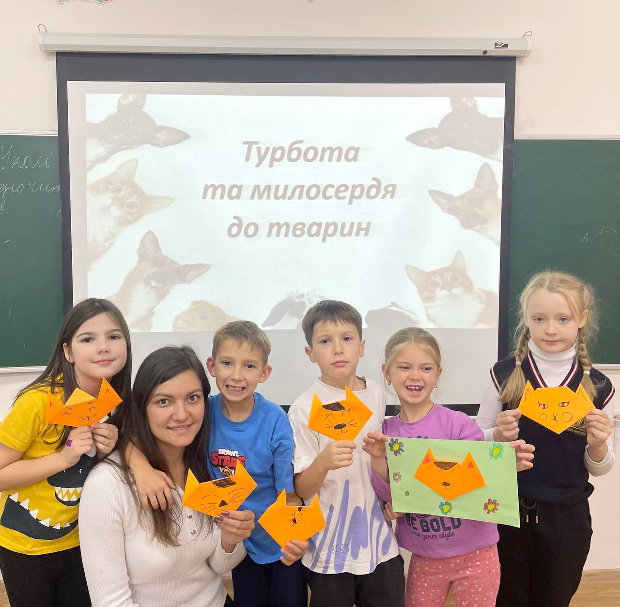 - учні 2-Б класу виготовляли котиків орігамі, розмірковуючи про турботу, милосердя та відповідальність;