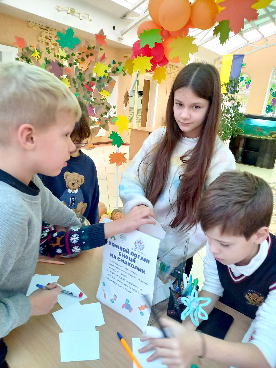 Учні мали змогу поділитися тим, що їх турбує: написати негативні емоції на стікерах і залишити їх у спеціальній скриньці. А замість цього отримати — усмішку, смачний смаколик і трохи тепла.