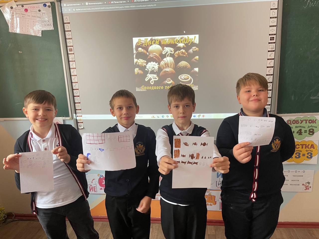 На уроках: інформатики: збирали цікаві факти та малювали шоколадку в графічному редакторі.