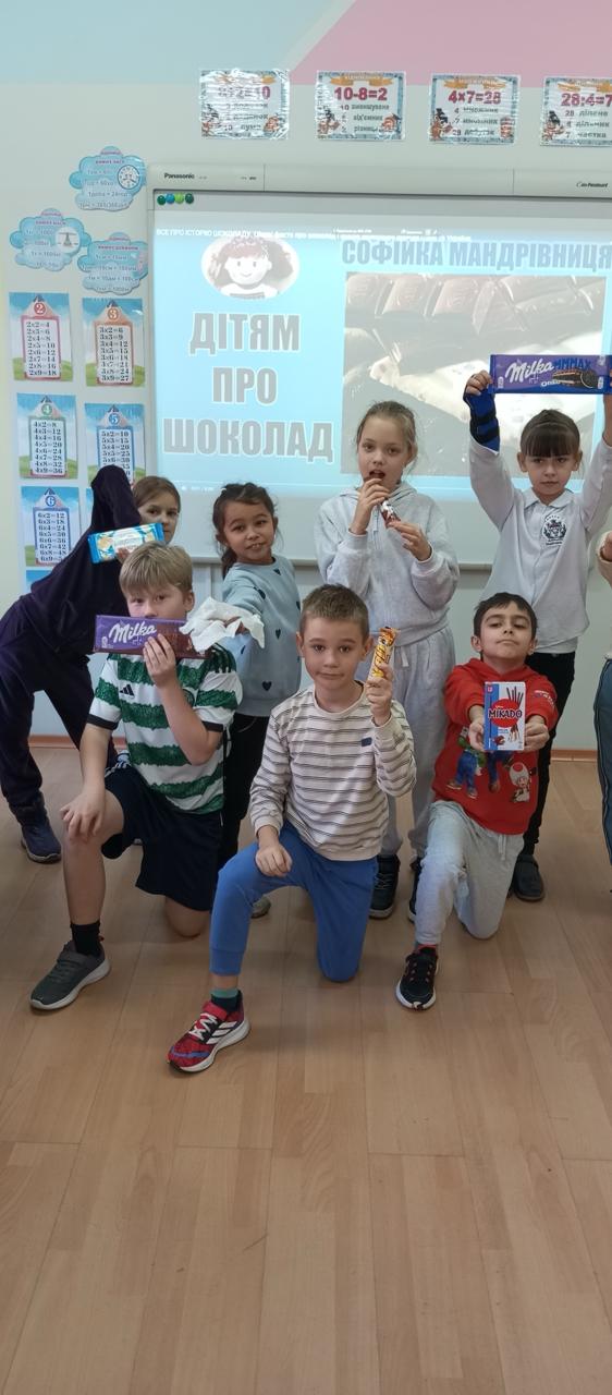На уроці математики: дізналися, як з улюблених ласощів можна створити справжні наукові відкриття. Розв’язували шоколадні задачі та вирази, знаходили периметр шоколадки та порівнювали її розміри з іншими предметами.