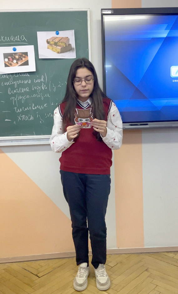 На уроках української літератури: прослухали історію «Поширення шоколаду світом», створили проєкти, де написали сенкан до слів «шоколад» та «цукерка», навчилися римувати про смаколики та десерти. Прослухали твір про цукерку «Солодка казка в блискучій обгортці», згенерований ШІ.