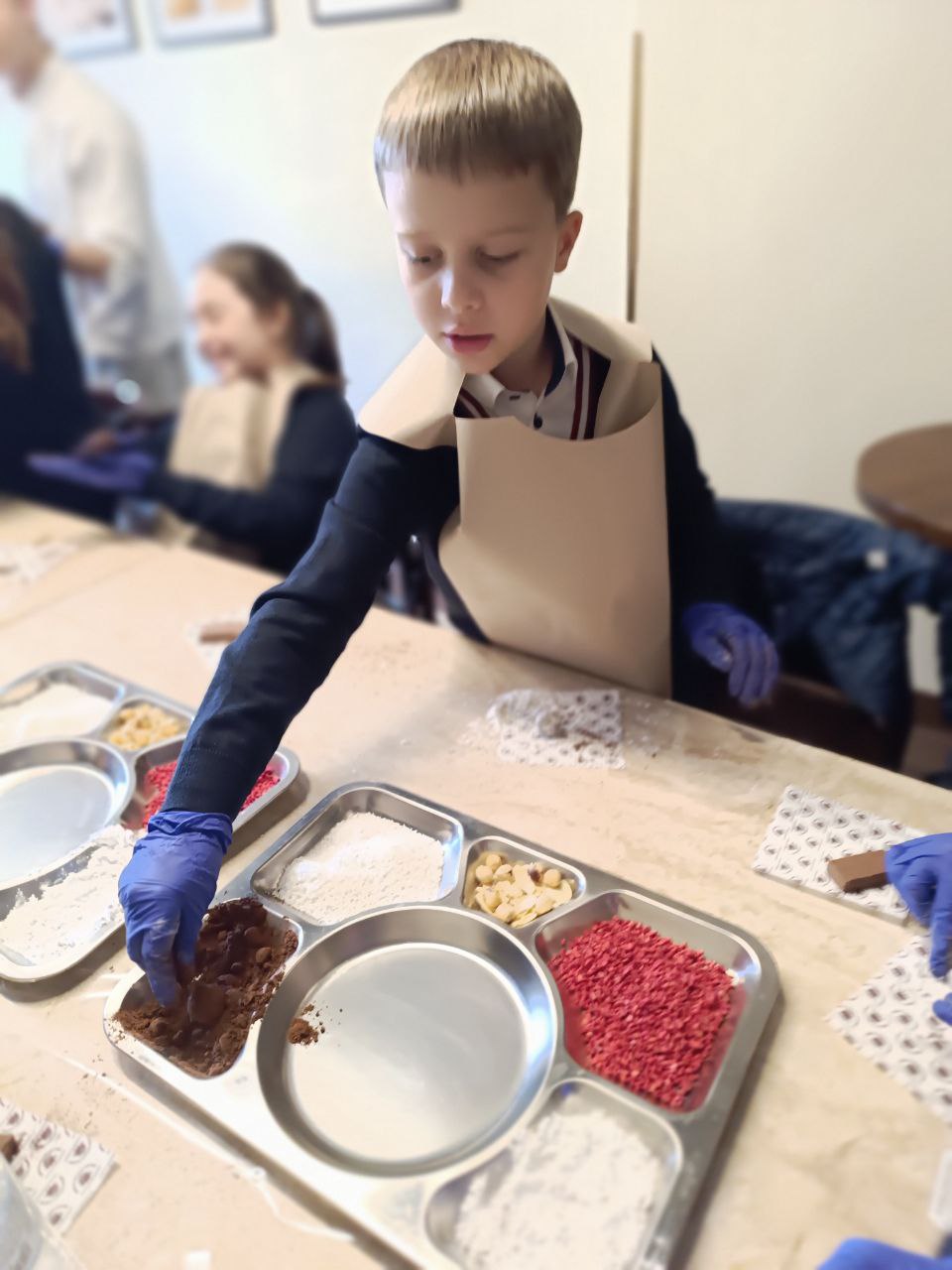 Під час екскурсії діти дізналися цікаві факти про історію та виробництво шоколаду, а також почули неймовірну новину — у світі набирає обертів “шоколадна криза”, і навіть існує шоколад із додаванням продуктів бджільництва.