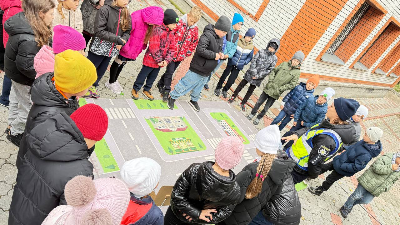 Учні мали можливість повторити правила дорожнього руху на спеціальному макеті перехрестя. Діти пригадали, як правильно переходити дорогу, на що потрібно звертати увагу пішоходам, що означають кольори світлофора. Також школярі ознайомилися із дорожніми знаками, які зустрічаються щодня по дорозі до школи, дізналися, на які групи вони поділяються та яке значення має кожен із них.