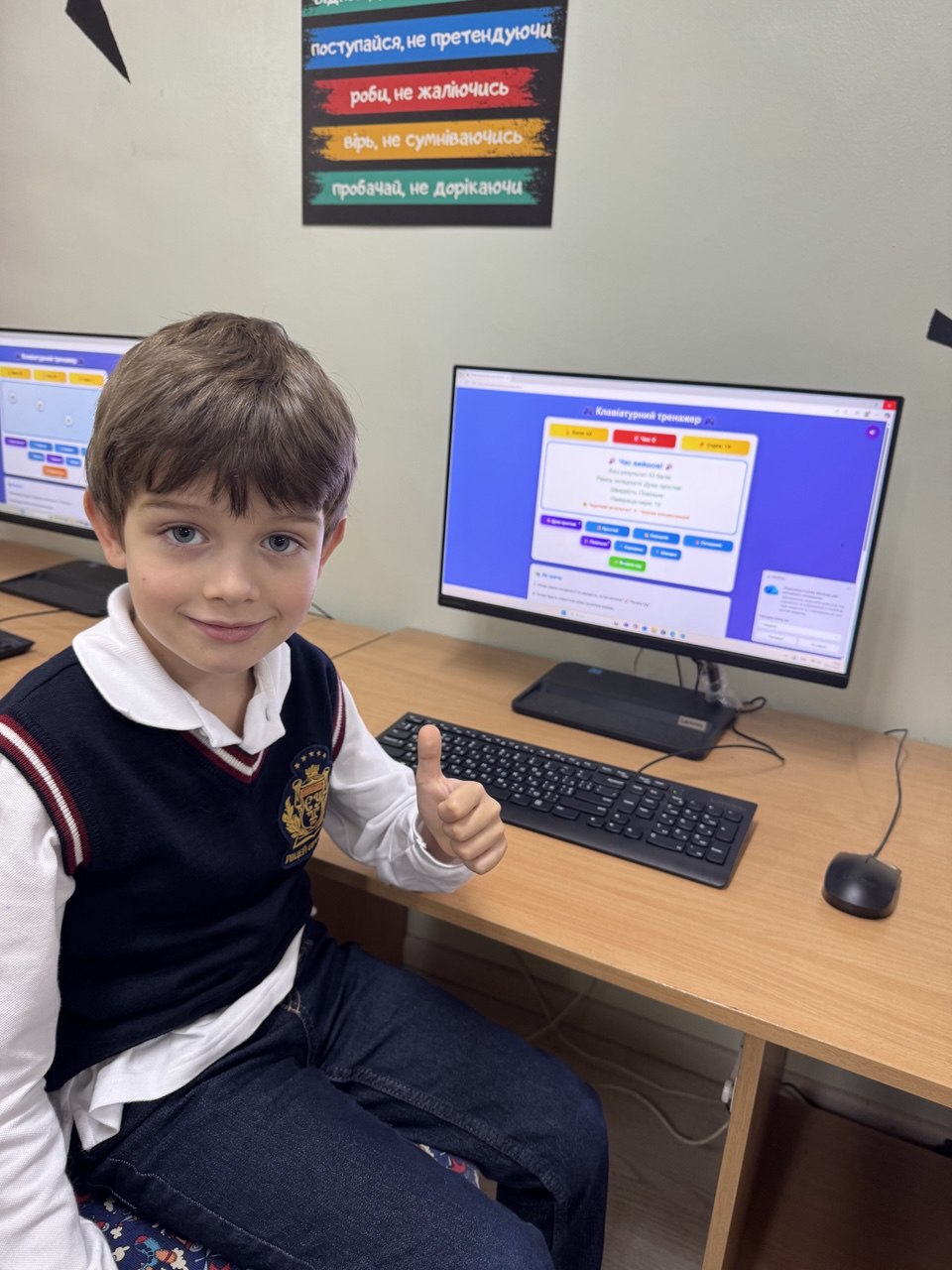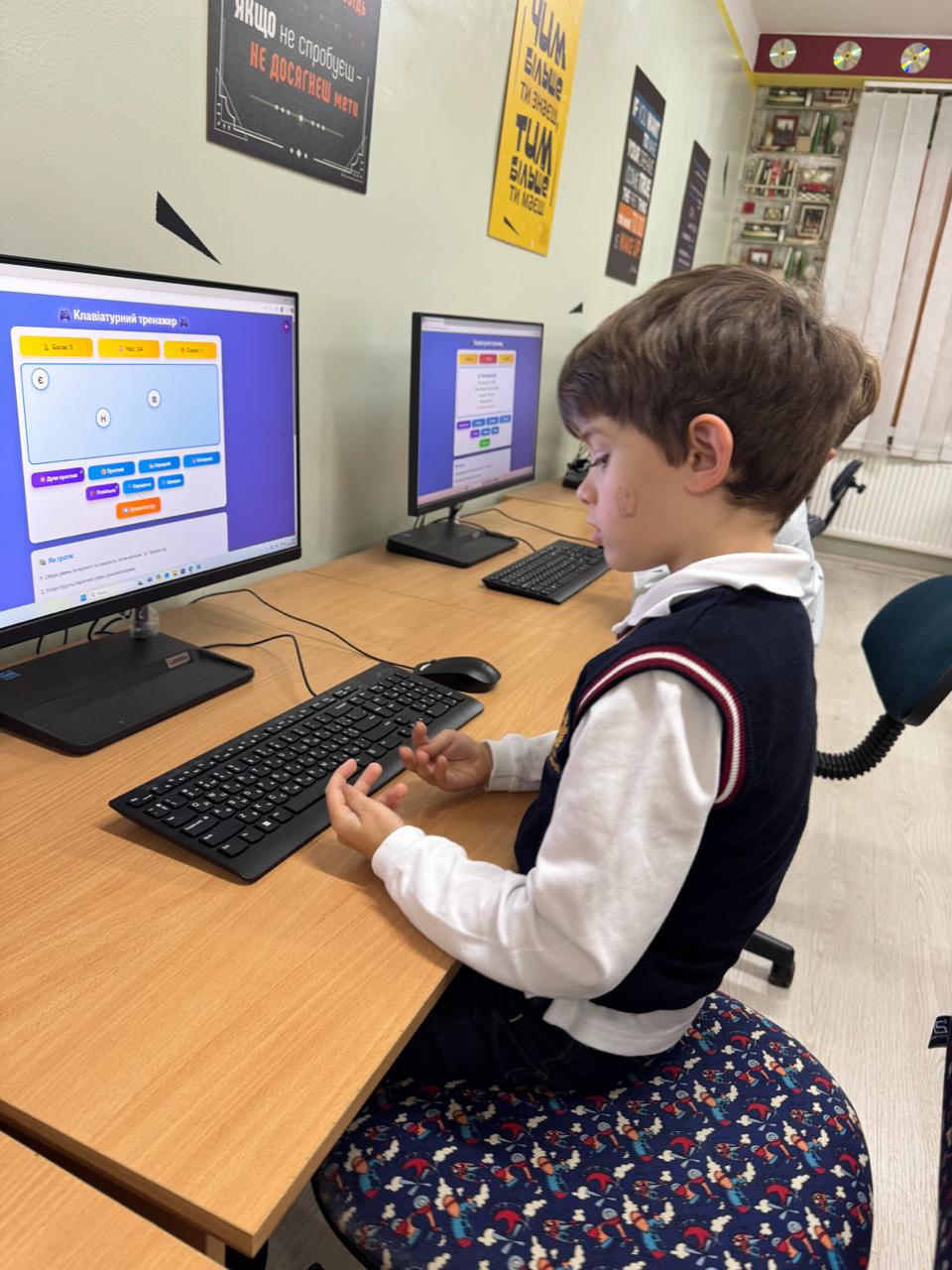 Щоб навчання було легким і цікавим, учитель перетворив звичайний урок на пізнавальну гру. Діти шукали потрібні літери, виконували завдання на швидкість і уважність, вчилися орієнтуватися на клавіатурі, ніби справжні маленькі айті-майстри.