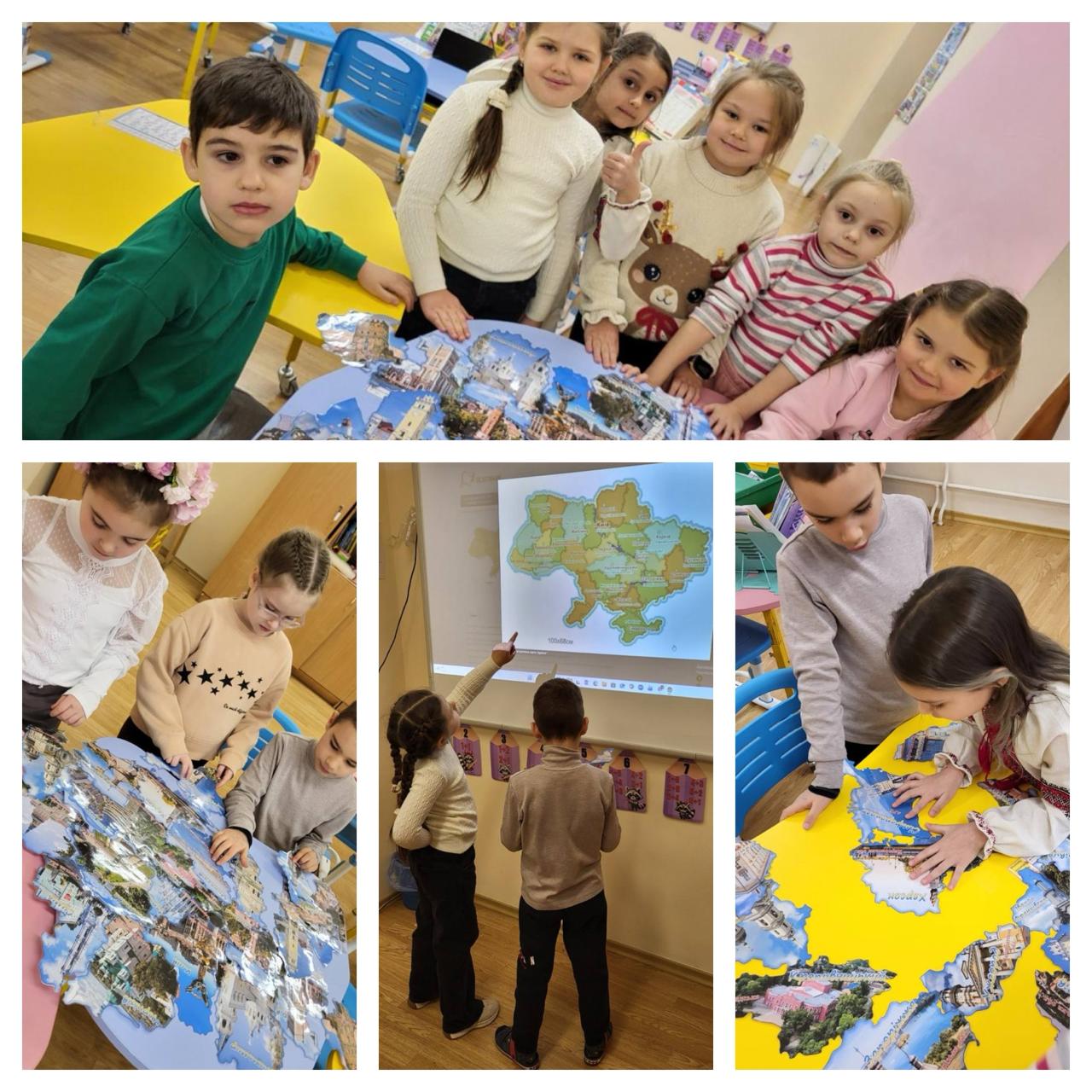 Пазл «Карта України» до Дня Соборності: маленькі патріоти 1-Б класу Ліцею «Євроленд»