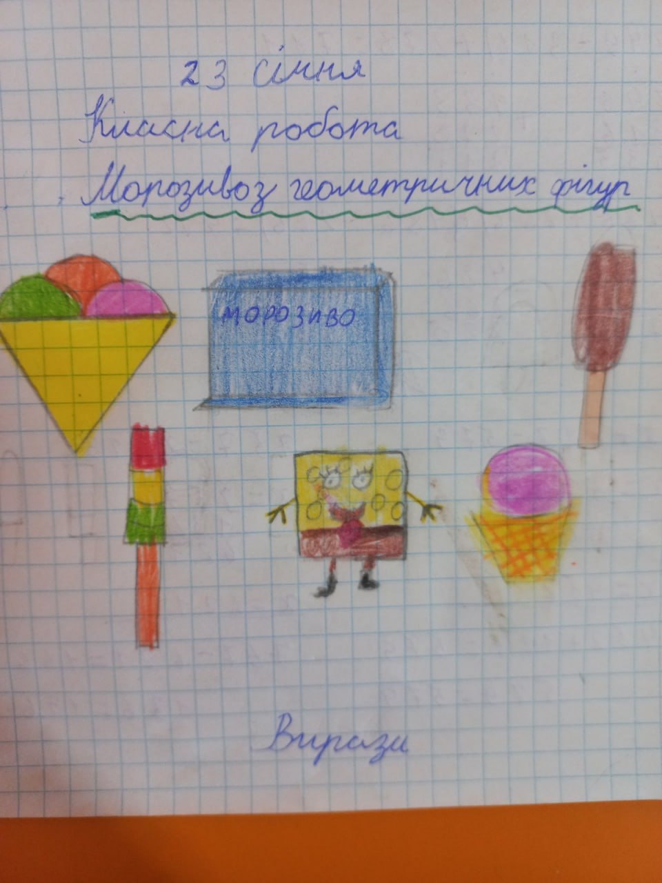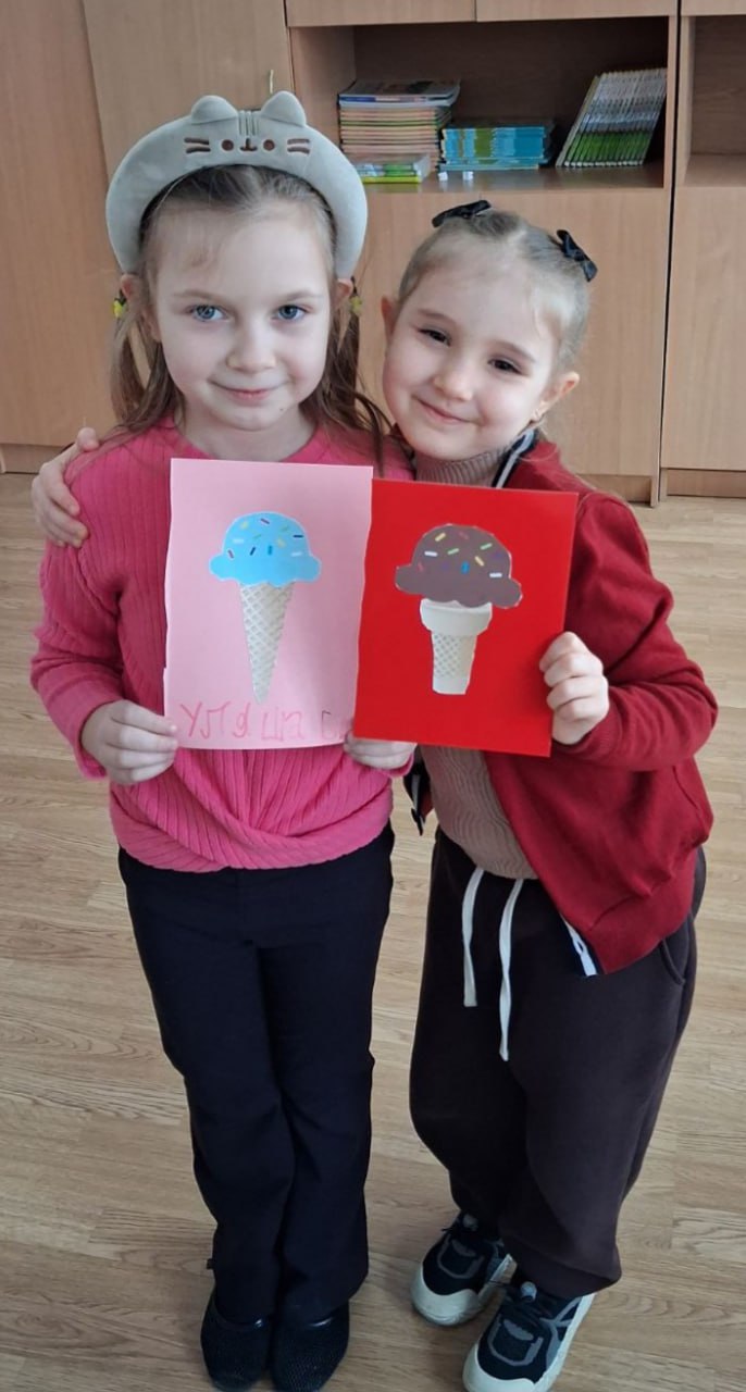 Учні рахували кульки морозива, розв’язували задачі про покупки в «морозивній крамниці», порівнювали ціни, масу та кількість, складали власні математичні приклади з морозивною тематикою.