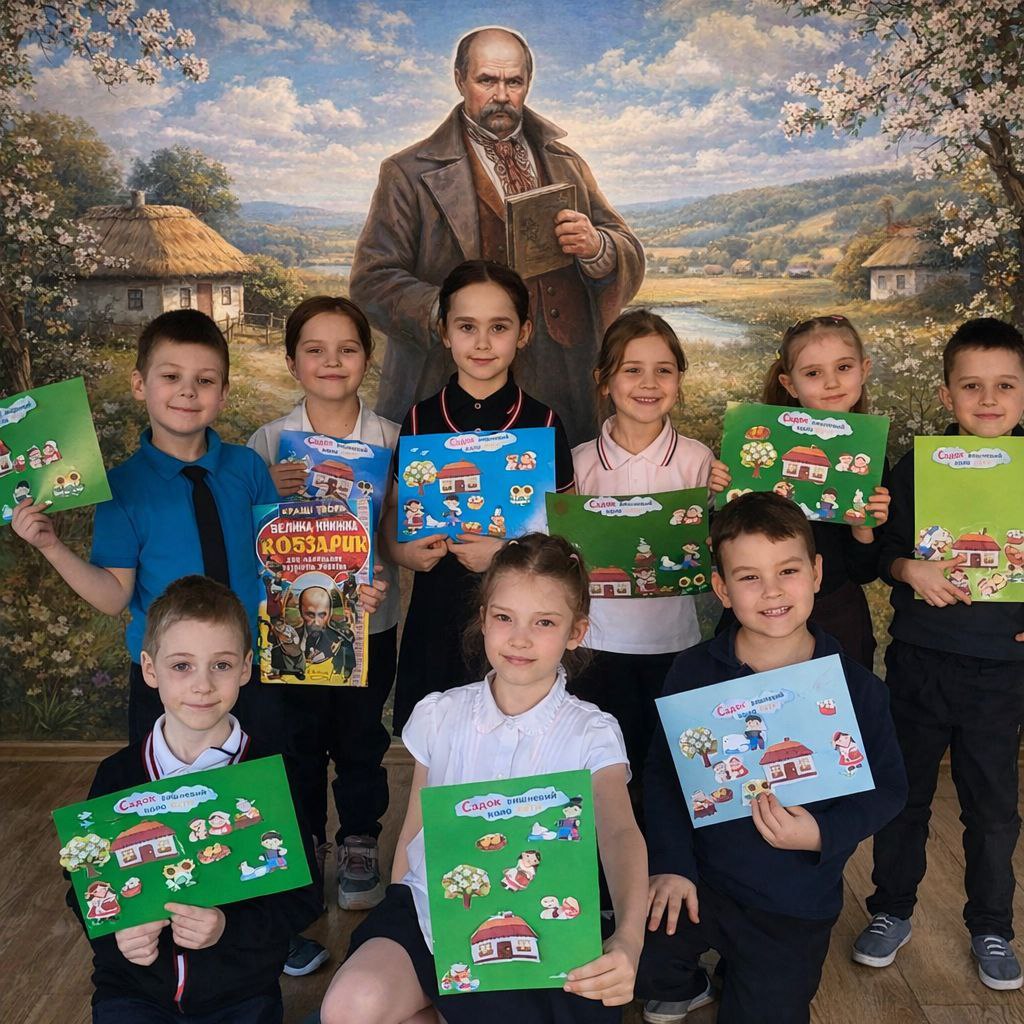 У 1-А класі відбувся пізнавальний захід, присвячений видатному українському поету. Першокласники познайомилися з життям і творчістю Шевченка, слухали його поезію та створювали яскраві аплікації до твору «Садок вишневий коло хати».