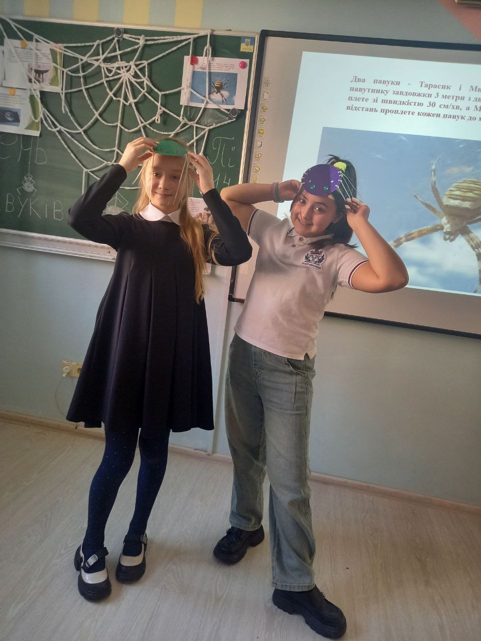 Заняття розпочалося з коротких учнівських повідомлень про павуків. Діти представили цікаві факти про будову, середовище існування та роль павуків в екосистемі. Це задало змістовний контекст і підвело до розуміння: навіть невеликі створіння є важливою частиною природного балансу.