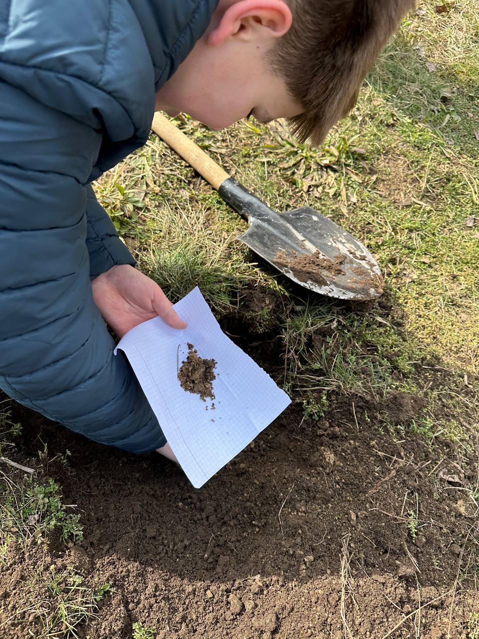 На уроці географії, приуроченому до Дня Землі, учні досліджували, як формуються ґрунти, та провели справжню польову й лабораторну роботу. Після зрізу ґрунту на подвір’ї ліцею діти взяли зразки гумусового горизонту й материнської породи, визначили тип ґрунту — чорнозем лучний, а також з’ясували, що він сформувався на лесовидному суглинку.