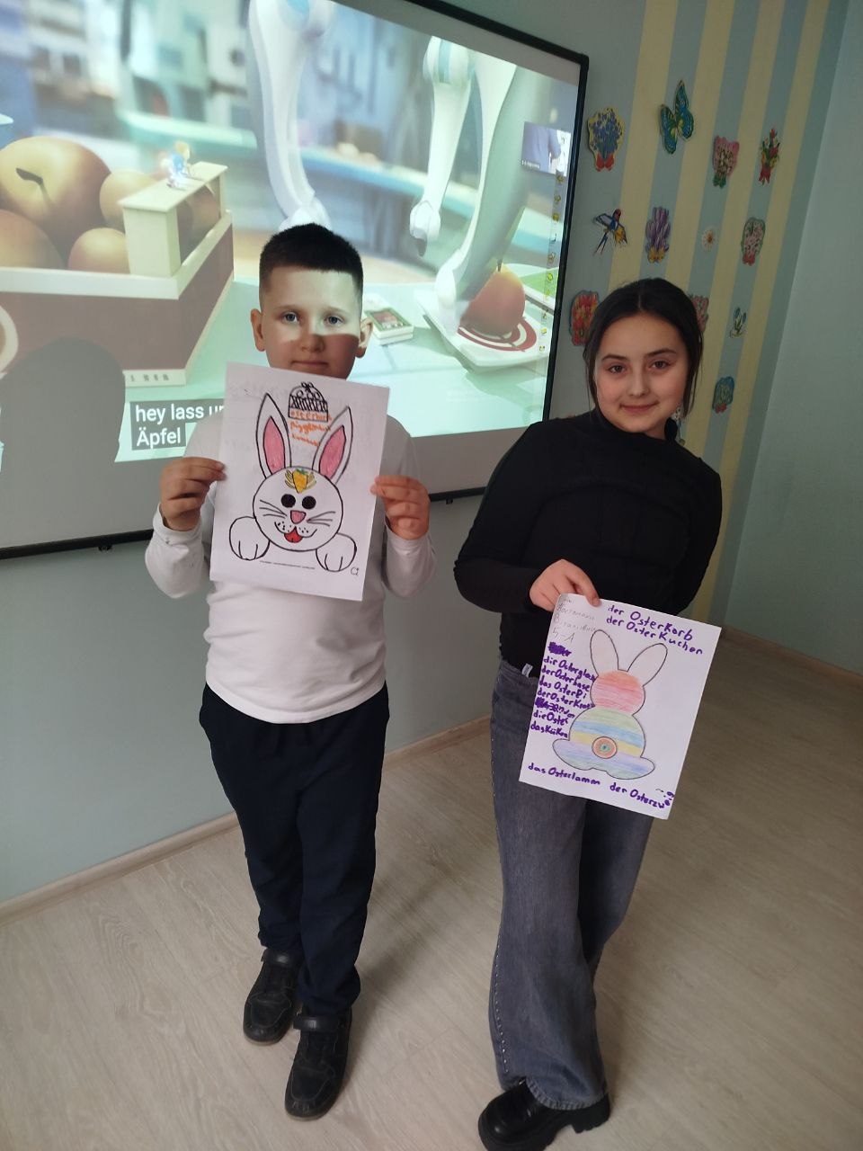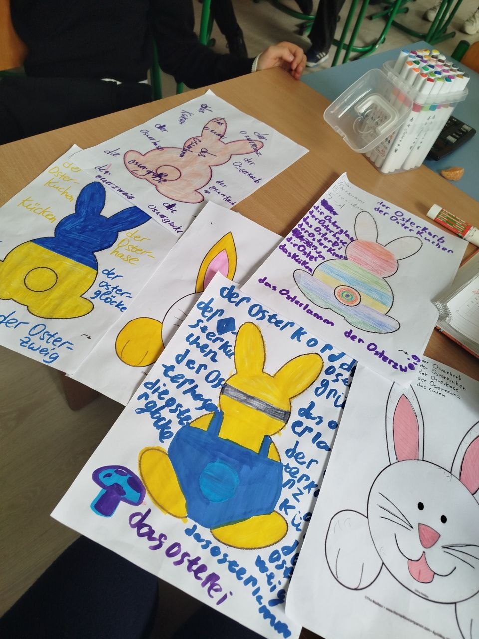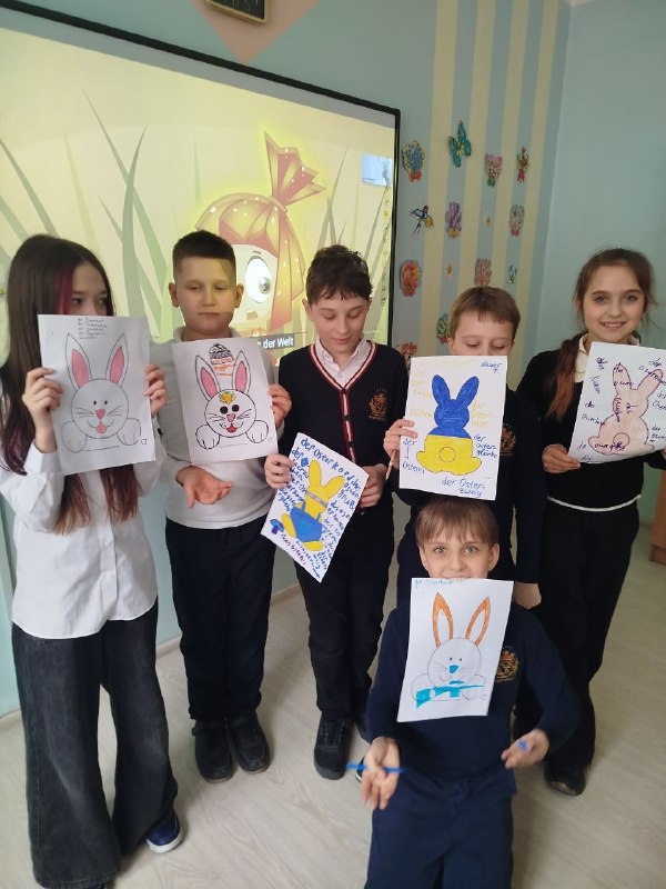 Для кращого засвоєння матеріалу учні виконали творче завдання — створювали малюнки із великодніми символами та підписували їх німецькою мовою.