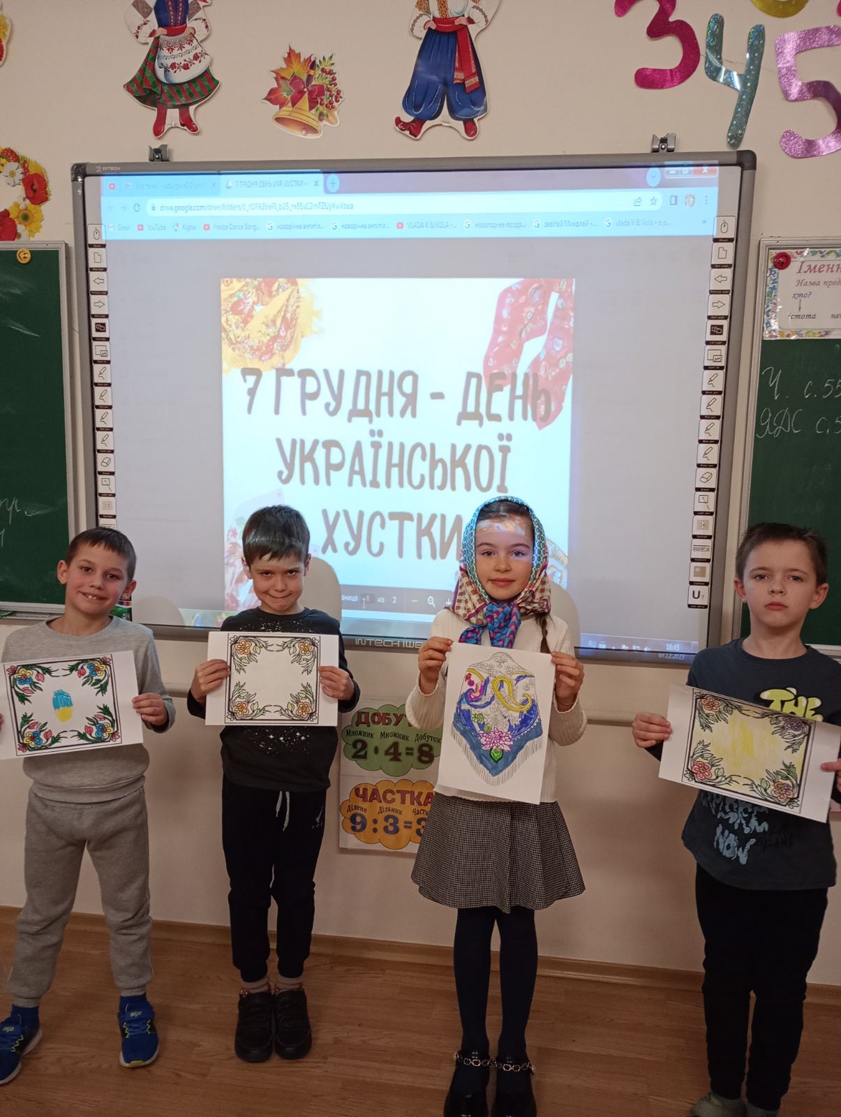 Учні 2-Б класу ознайомилися з видами хусток, прислів'ями про них та розмалювали.