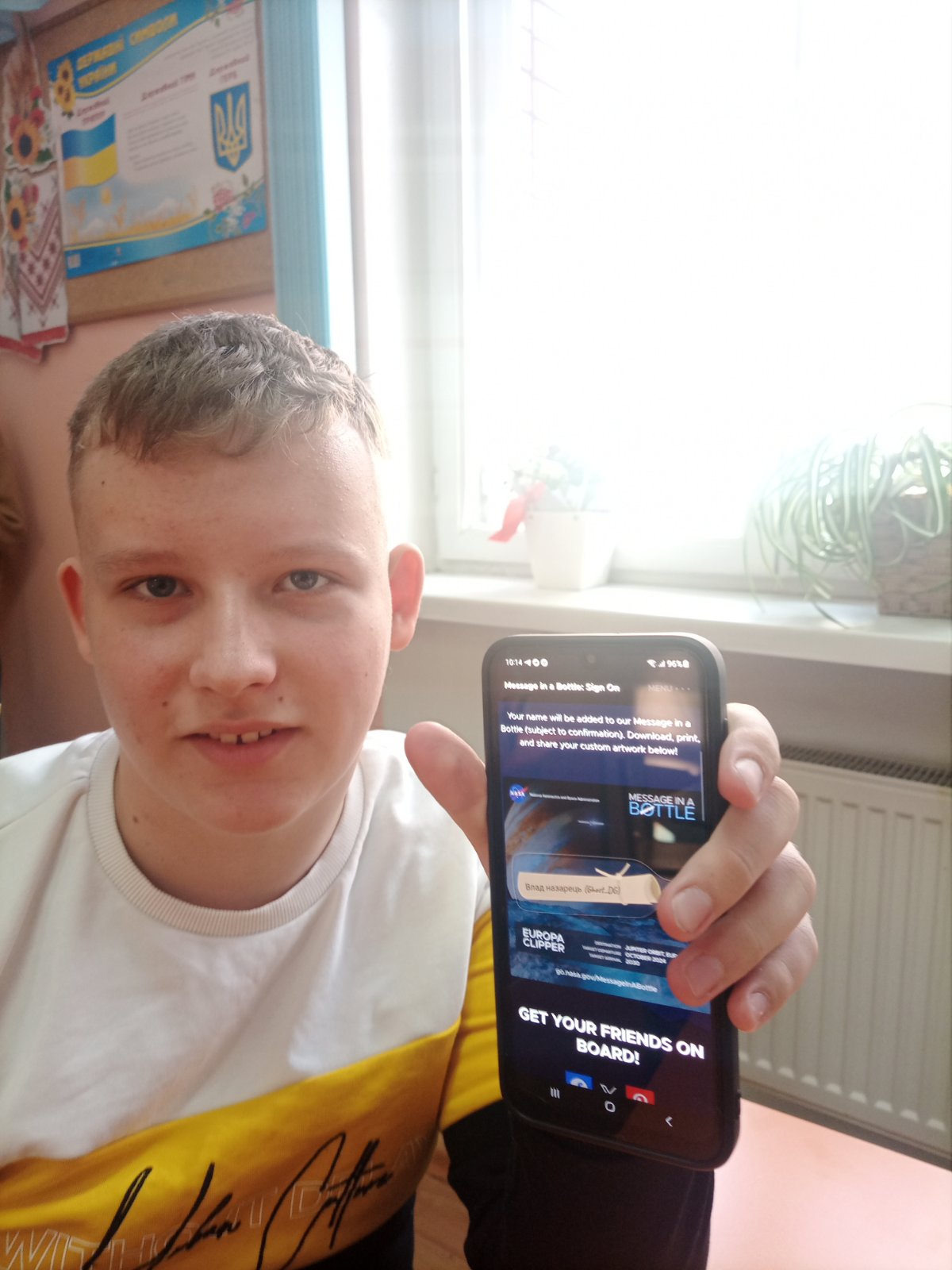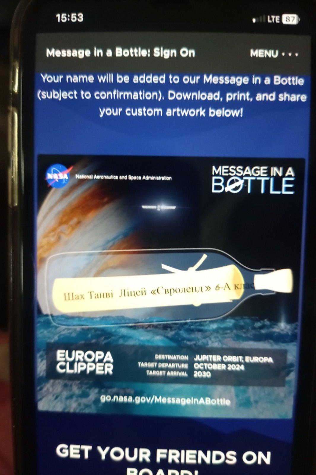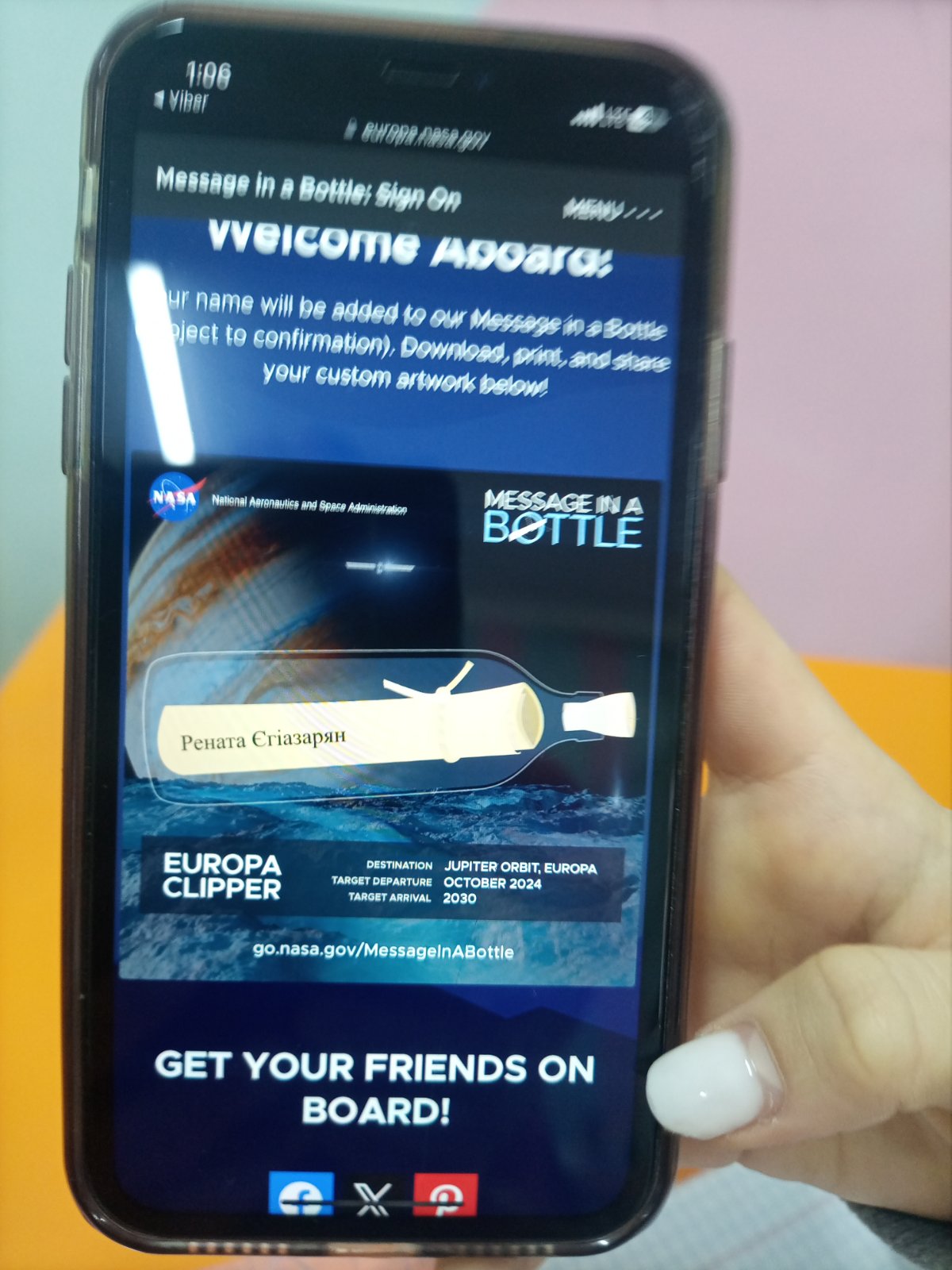 Разом з учнями ліцею «Євроленд» на уроці фізики та STEM приєдналися до місії NASA: вигравіювали своє ім’я на космічному кораблі NASA Europa Clipper, який пройде 2,8 мільярда миль, щоб дослідити супутник Юпітера Європу, океанський світ, у якому може бути життя.