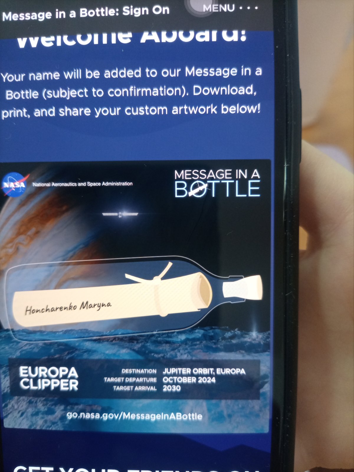 Приєднуйтесь за посиланням https://europa.nasa.gov/message-in-a-bottle/sign-on/